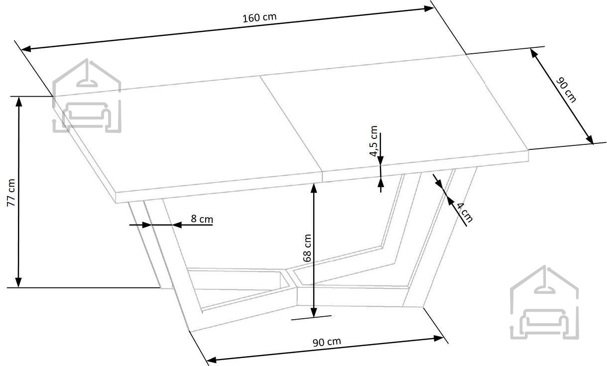 Die Grundmaße des Tisches betragen 250x90x77 cm, im Set sind zudem zwei Verlängerungsplatten mit den Maßen 45x90 cm enthalten. Damit kann die Länge ganz einfach von 160 cm auf 250 cm oder sogar auf 340 cm erweitert werden. Diese Flexibilität ermöglicht eine rasche Anpassung an die Anzahl der Gäste oder zusätzlichen Platzbedarf. Der Auszugsmechanismus ist so konstruiert, dass der Tisch auch im ausgezogenen Zustand stabil und optisch harmonisch bleibt.