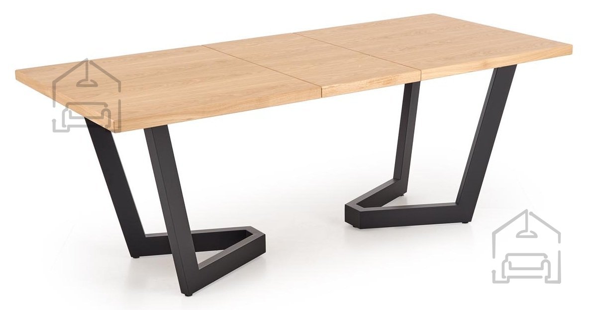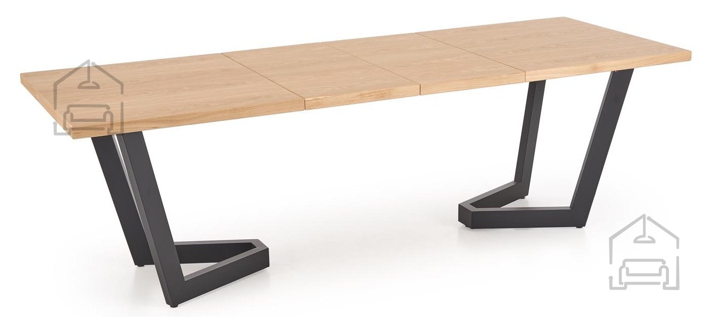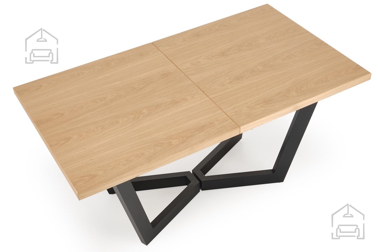 Der Esstisch Massaive 2 – Halmar vereint Ästhetik, Funktionalität und Beständigkeit in perfektem Gleichgewicht. Mit seiner natürlichen Kombination aus Eiche und Schwarz sowie der vielseitig ausziehbaren Konstruktion ist er eine hervorragende Wahl für alle, die einen charaktervollen und langlebigen Tisch suchen.