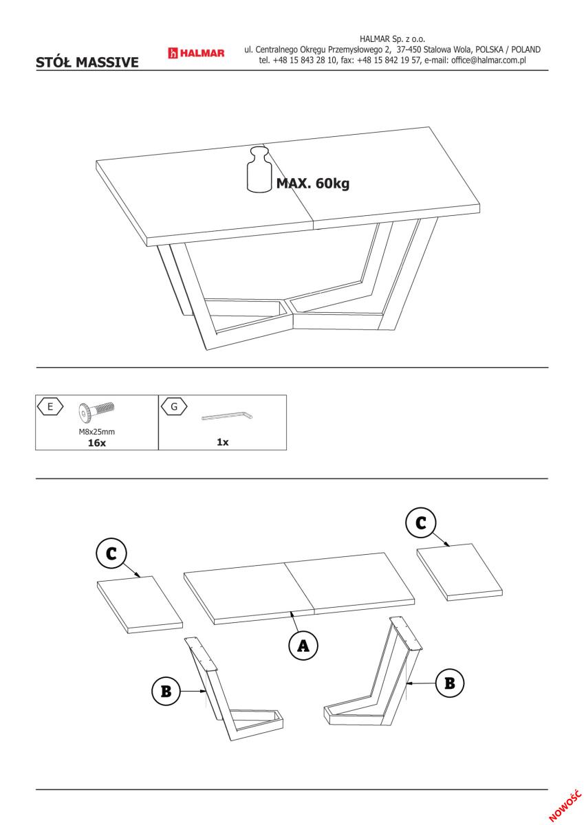 Furnierte Tischplatte mit Massivholzkanten 250x90x77 cm: Esstisch Massaive 2 – Halmar.