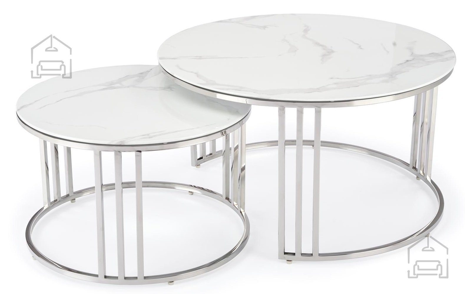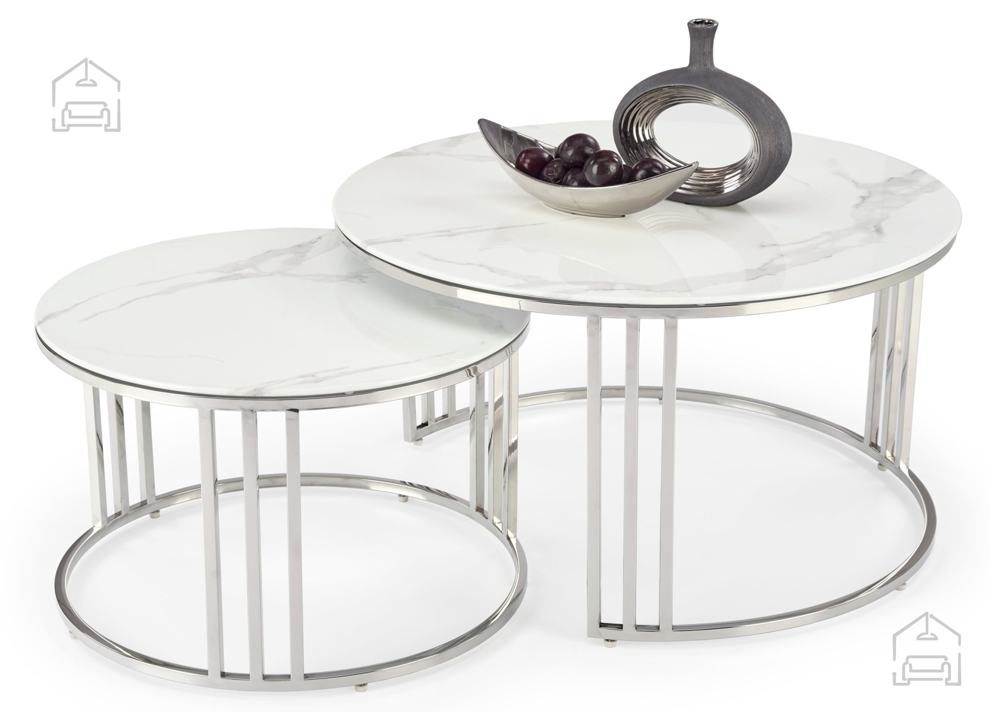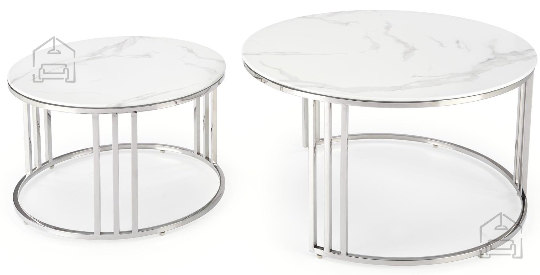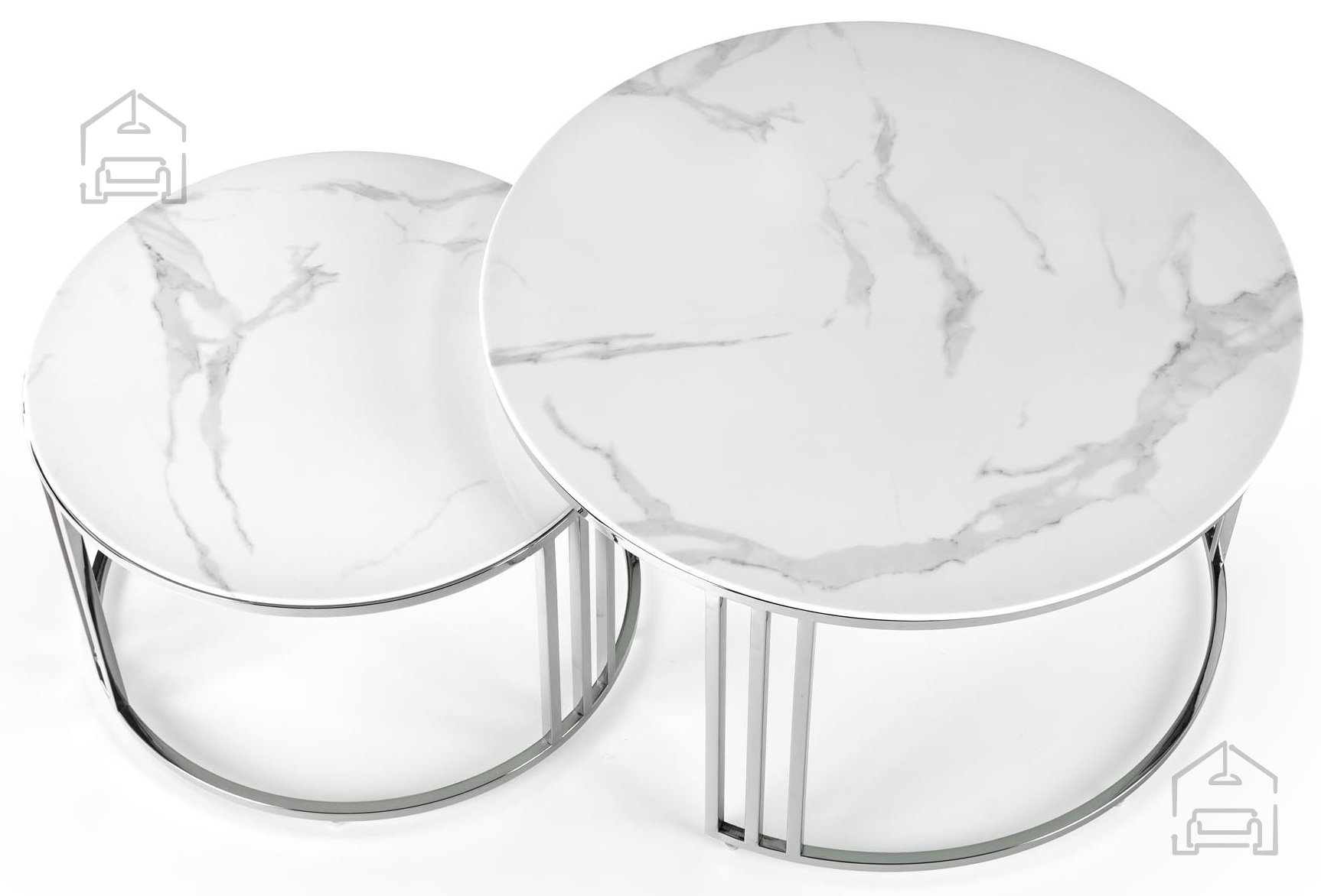 Edelstahl und weiße Marmoroptik: 2er-Set Couchtische Mercury – Halmar.