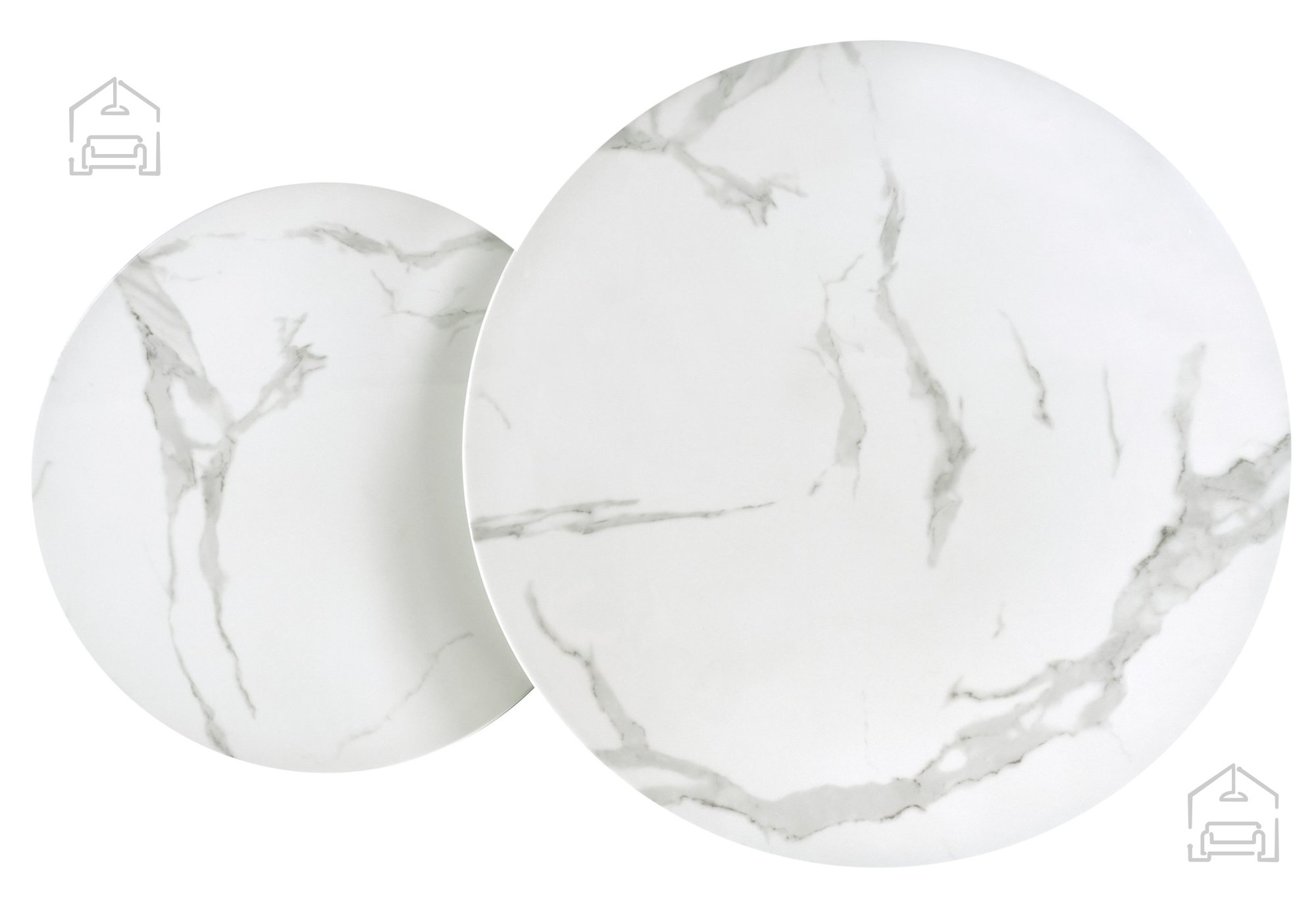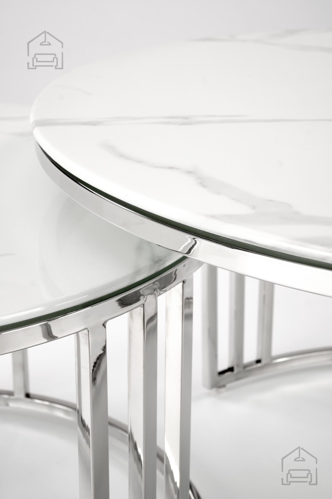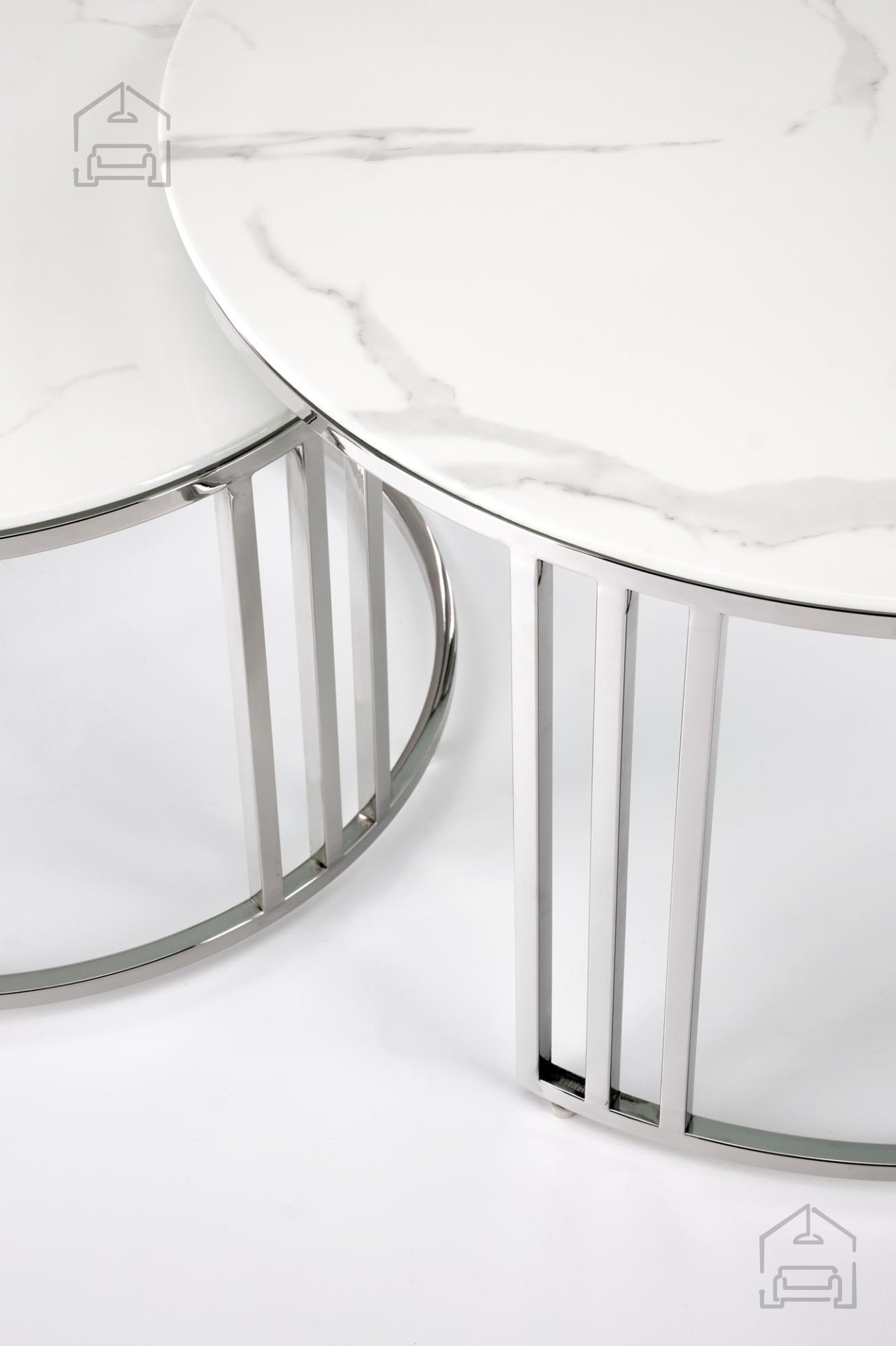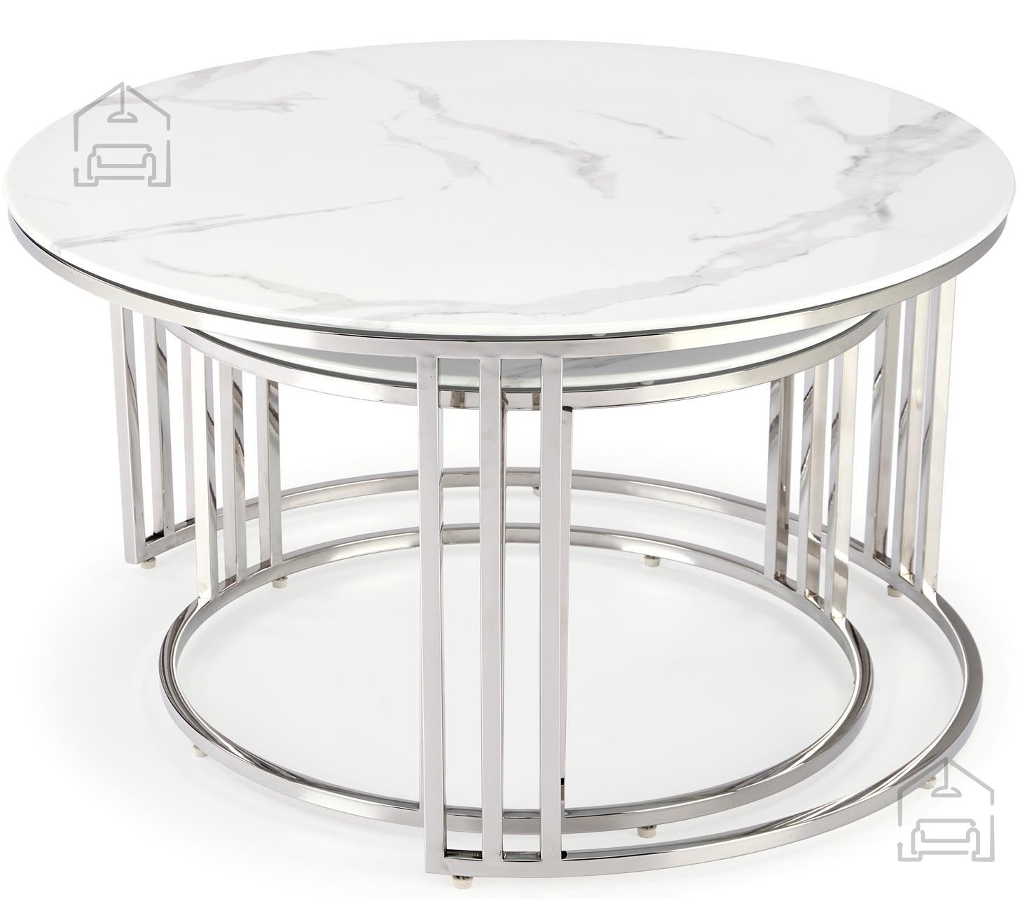 Edelstahl und weiße Marmoroptik: 2er-Set Couchtische Mercury – Halmar.