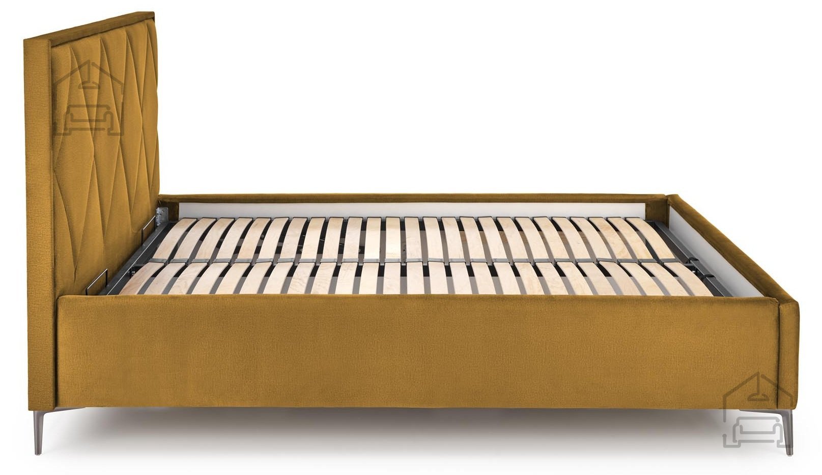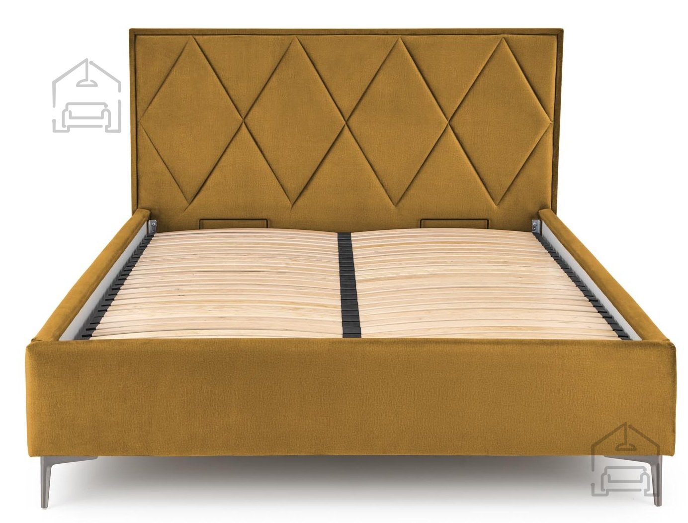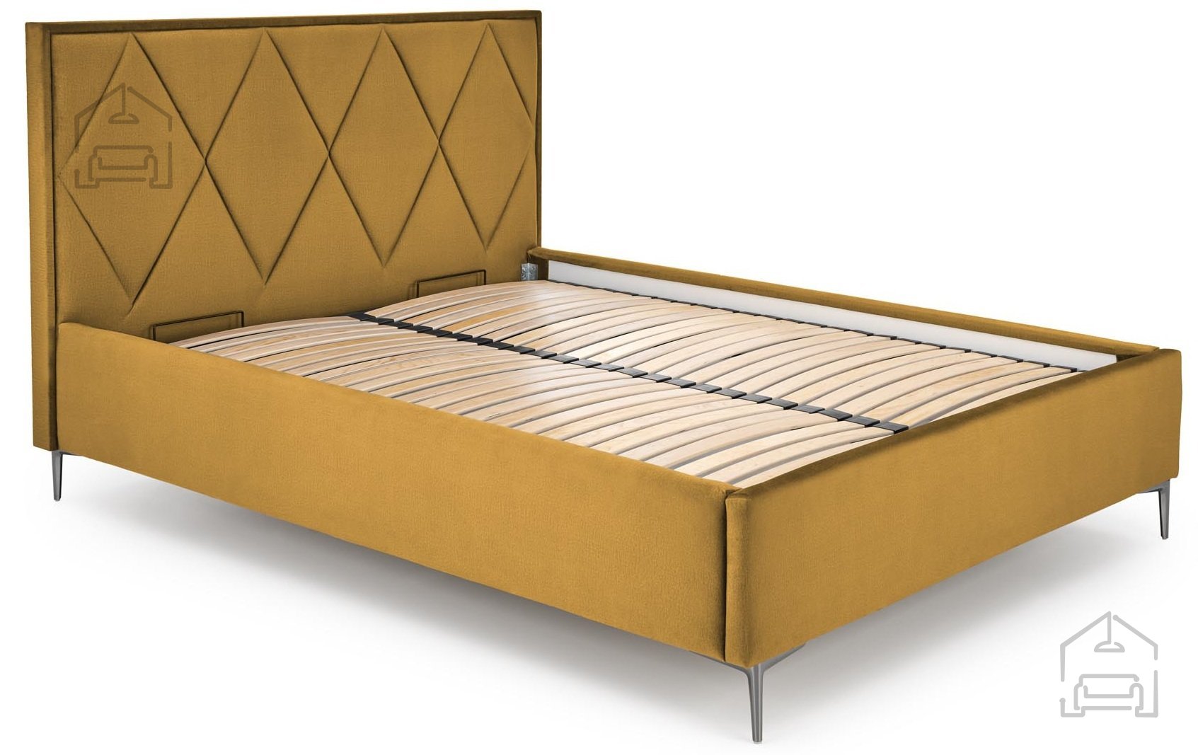 Samtstoff und die edle Farbe Senfgelb: Das Halmar-Betthaupt Modulo W4.
