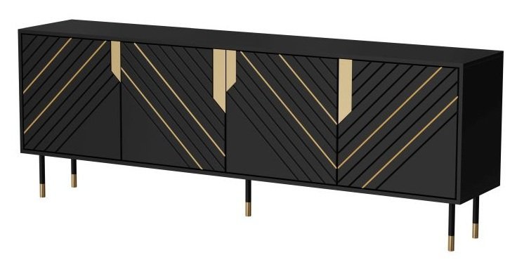 Die Kommode Mountain 200 cm 4D von Halmar vereint Eleganz und Funktionalität in einem modernen Möbelstück. Sie wird in einer polnischen Fabrik gefertigt, was für präzise Verarbeitung und hohe Qualität steht. Mit der raffinierten Kombination aus mattem Schwarz und goldenen Akzenten passt diese Kommode perfekt sowohl zu minimalistischen als auch zu luxuriöseren Einrichtungsstilen. Klare Linien und das dezente Türöffnungssystem verleihen dem Raum ein aufgeräumtes, modernes Erscheinungsbild.