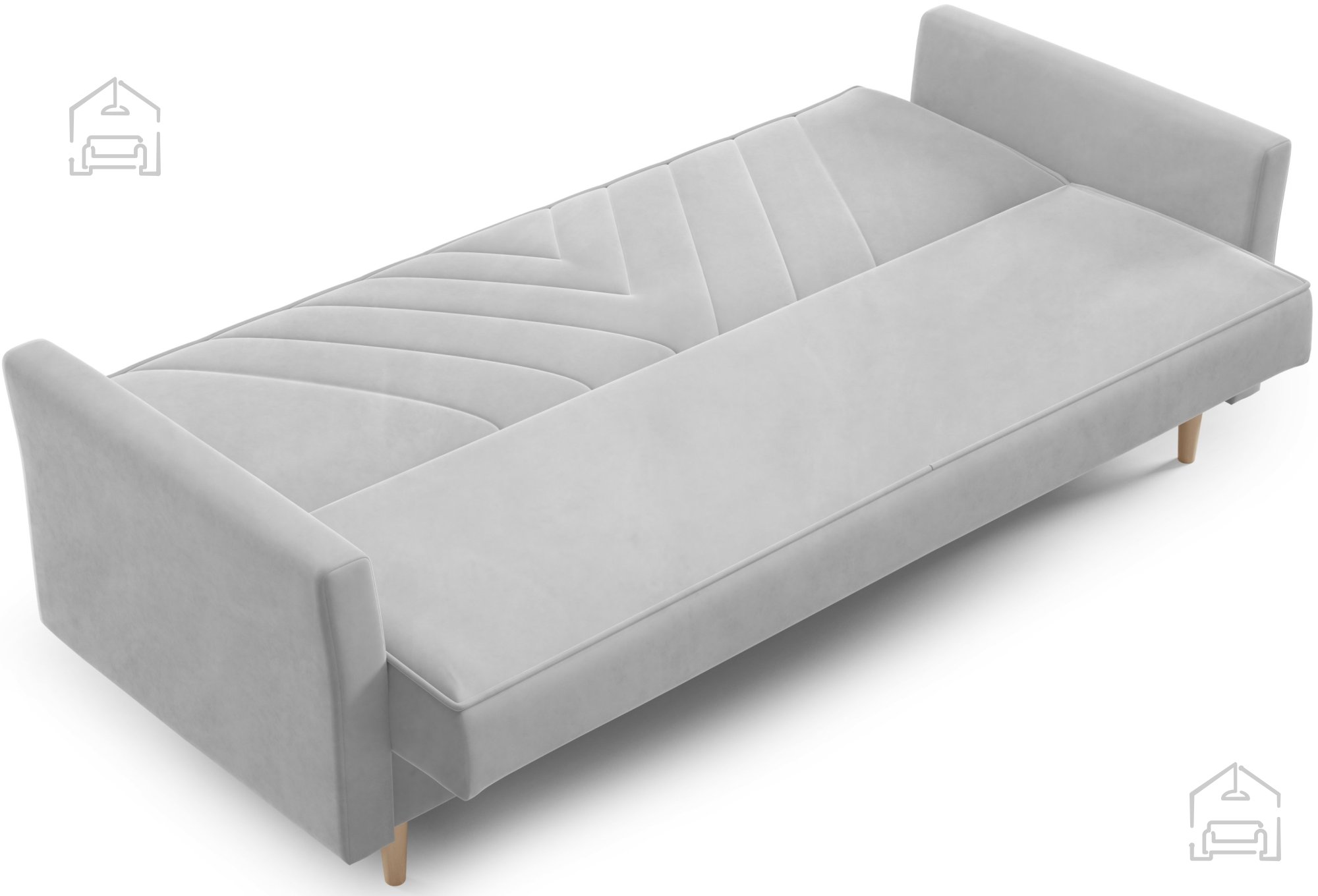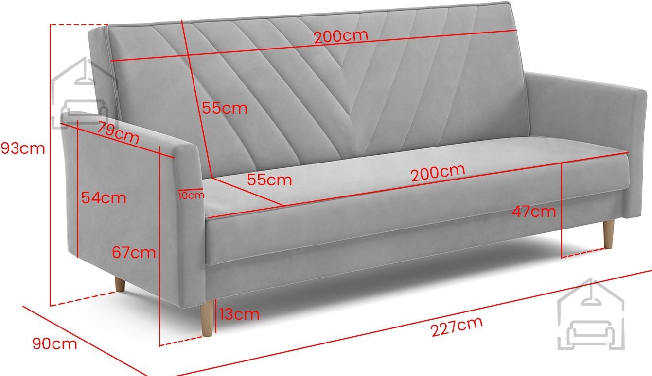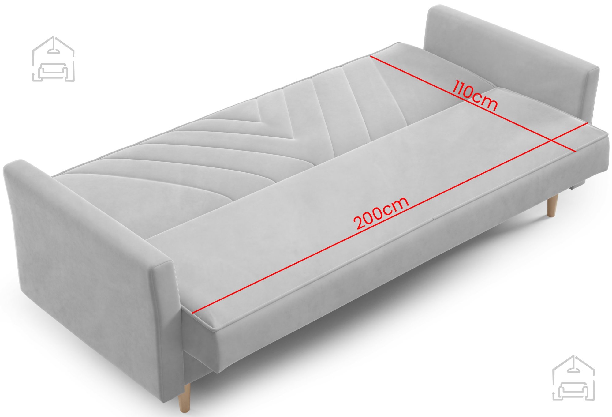 Das Sofa Sven der Marke PKMebel ist ein modernes Polstermöbelstück, das Funktionalität, schlichtes Design und hochwertige Verarbeitung vereint. Mit seinen Maßen von 227x90x93 cm bietet es tagsüber ausreichend Platz zum gemütlichen Sitzen und lässt sich abends mit einem einfachen Klick-Klack-Mechanismus in eine angenehme Liegefläche von 110x200 cm verwandeln. Dieses System ermöglicht eine schnelle und mühelose Umwandlung vom Sofa zum Bett – ideal für den täglichen Gebrauch oder gelegentliche Übernachtungsgäste.