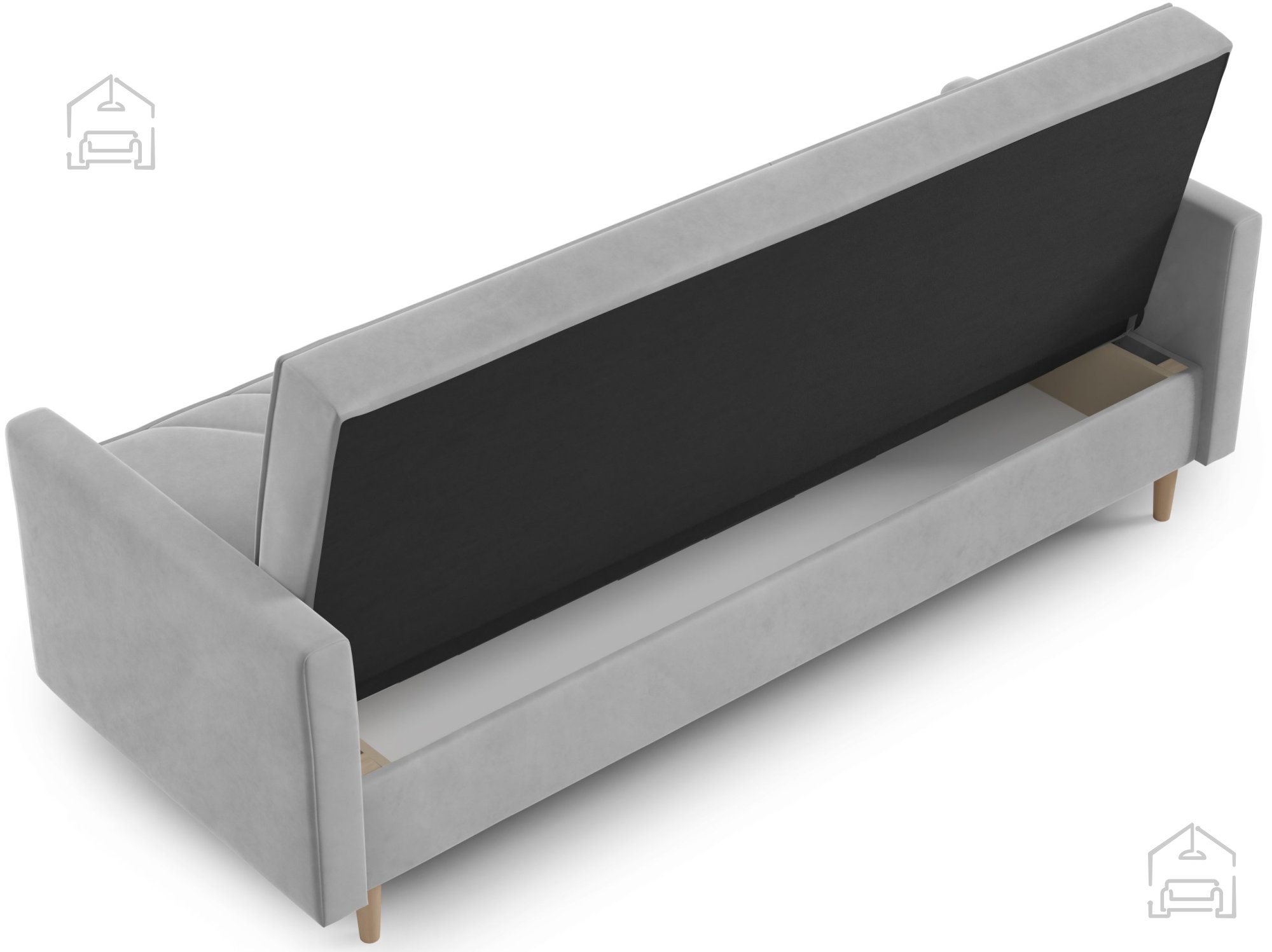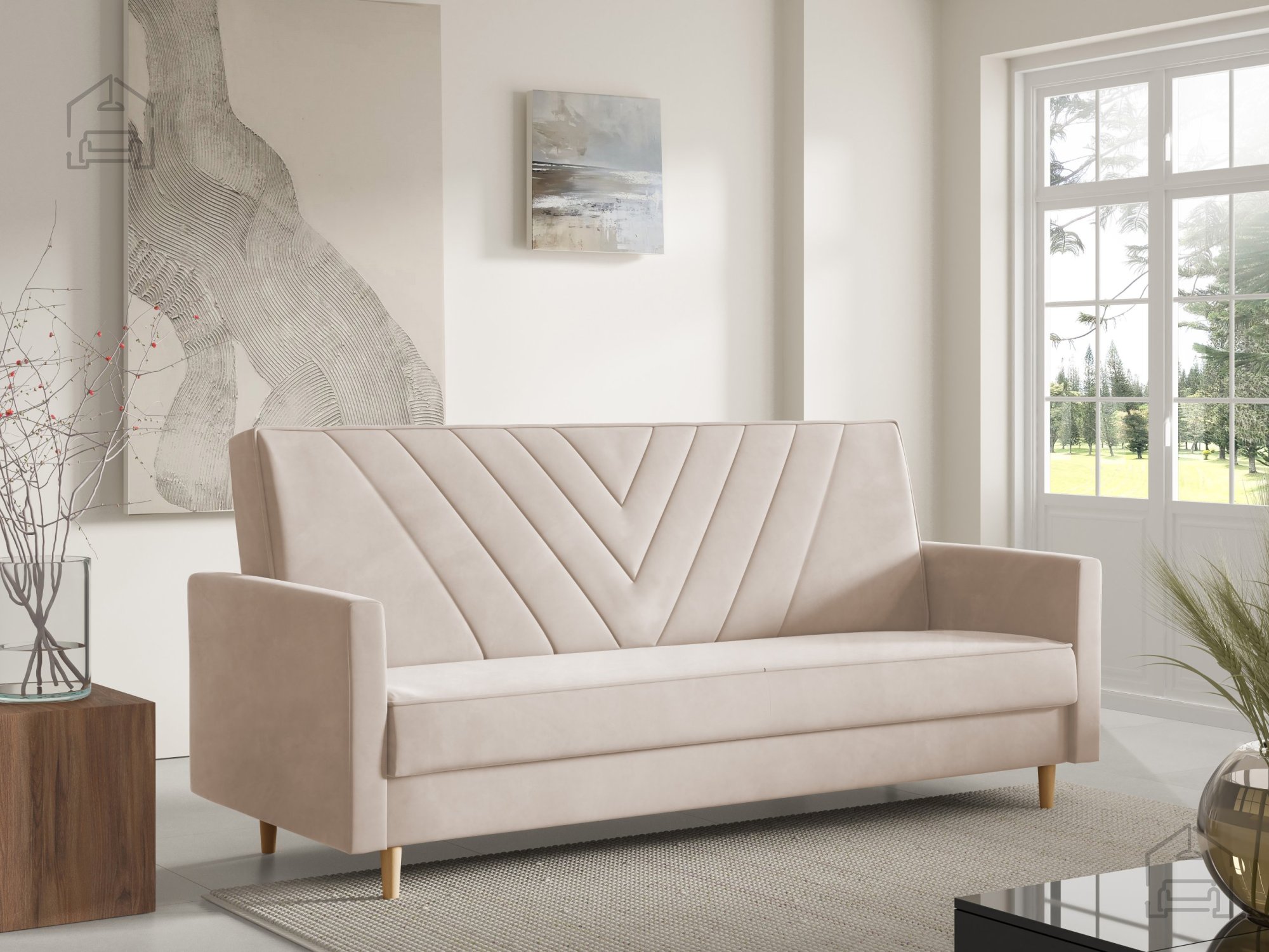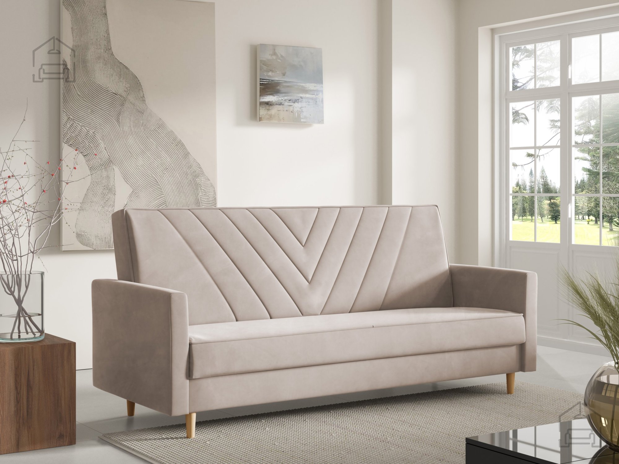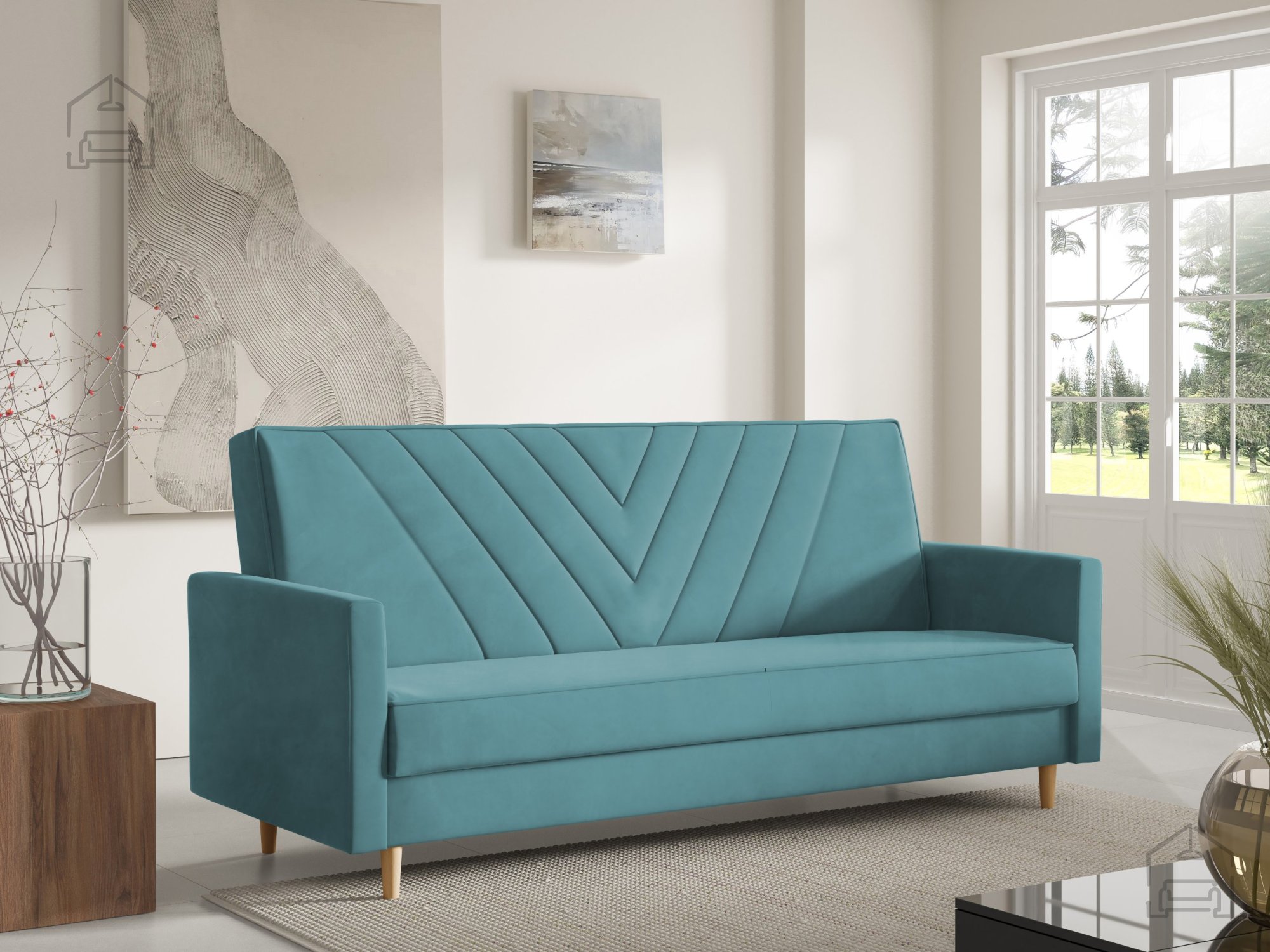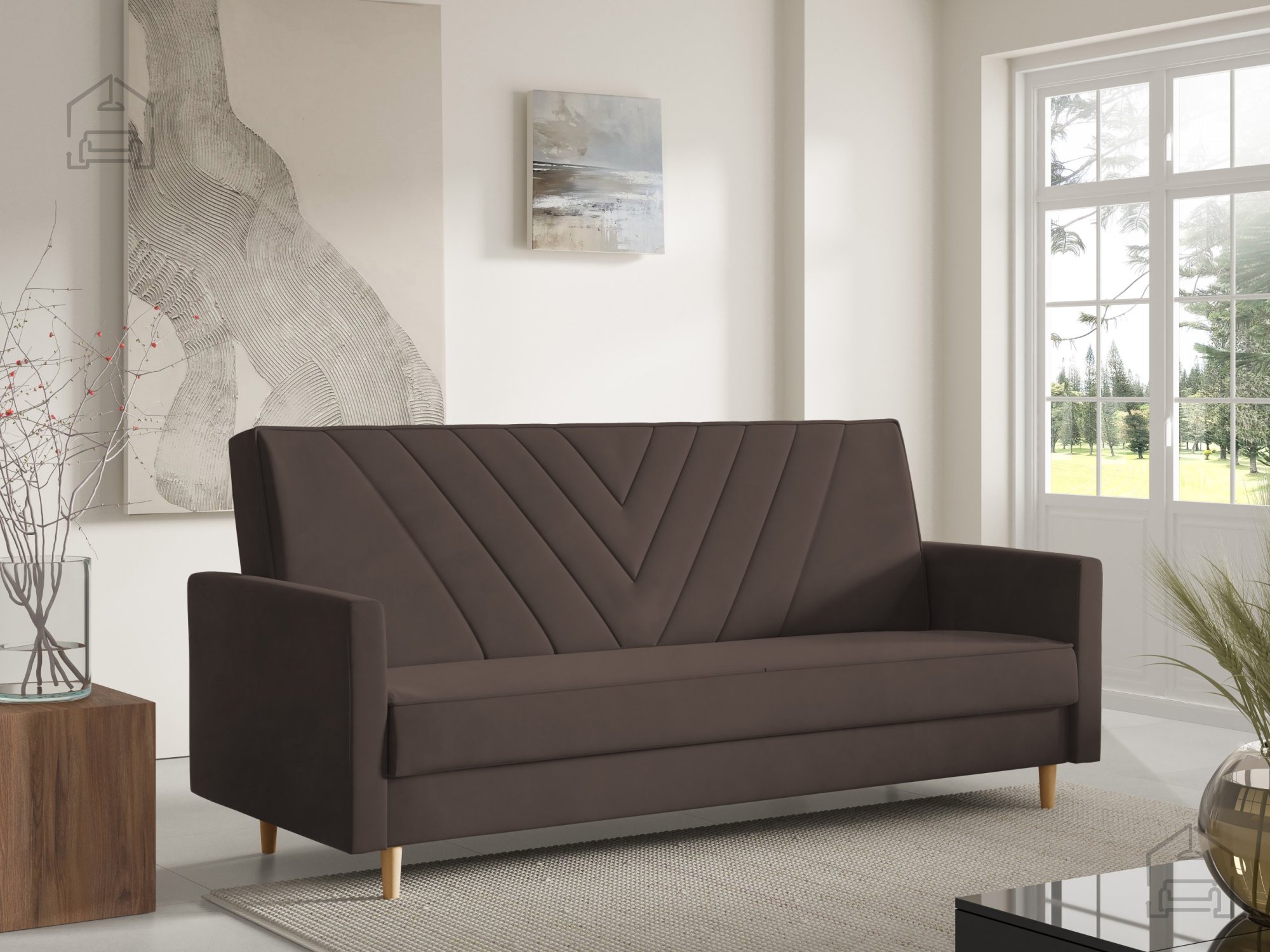 Der größte Vorteil des Modells Sven ist die integrierte Schlaffunktion. Die Liegefläche von 110x200 cm bietet ausreichend Platz für eine oder zwei Personen. Dank des Euro-Klick-Klack-Mechanismus lässt sich die Rückenlehne rasch in eine waagrechte Position bringen. Zusätzlich verfügt das Sofa über einen eingebauten Bettkasten, in dem Decken, Kissen oder Bettwäsche bequem verstaut werden können – besonders praktisch in kleineren Wohnungen, wo jeder Zentimeter zählt.