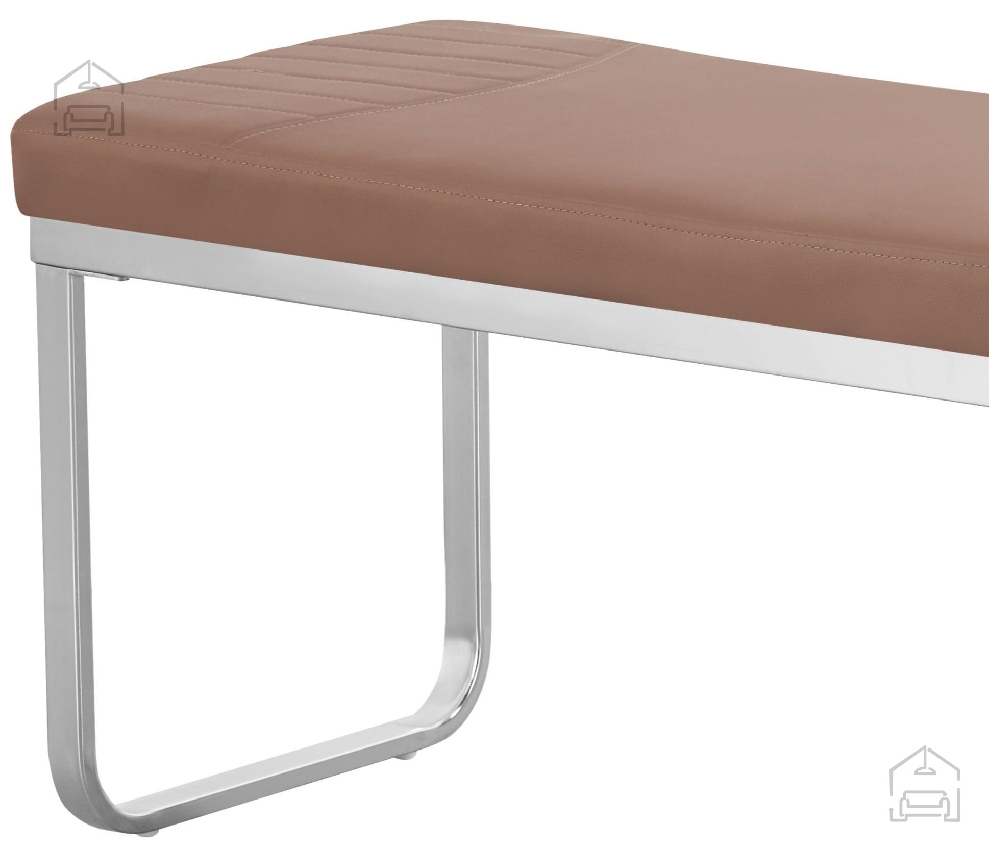 Die Bank ist mit hochwertigem Kunstleder (PU) bezogen, das für seine Strapazierfähigkeit und einfache Pflege bekannt ist. Der braune Farbton verleiht dem Möbelstück eine warme, wohnliche Ausstrahlung und wirkt zugleich elegant. Das glatte Kunstleder nimmt keine Flüssigkeiten auf und lässt sich mühelos mit einem trockenen oder leicht feuchten Tuch reinigen. Somit bleibt die Bank lange schön und gepflegt, ohne besonderen Pflegeaufwand.