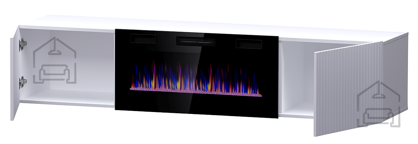 Matte weiße Oberfläche und Möglichkeit zum Einbau eines Kamins: TV-Kommode mit Kaminoption Pafos EF 180 cm – Halmar.