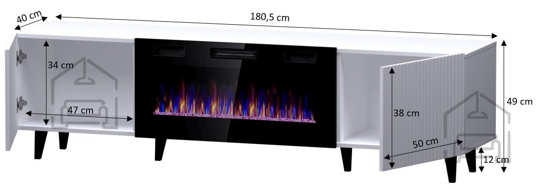 Die TV-Kommode Pafos EF schafft eine harmonische Balance zwischen Funktionalität und optischer Leichtigkeit. Die Option, einen Kamin hinzuzufügen, verleiht dem Raum zusätzliche Wärme und Behaglichkeit – ganz ohne bauliche Veränderungen. Eine ideale Lösung für moderne Wohnungen, die Wert auf Flexibilität und Anpassungsfähigkeit legen.