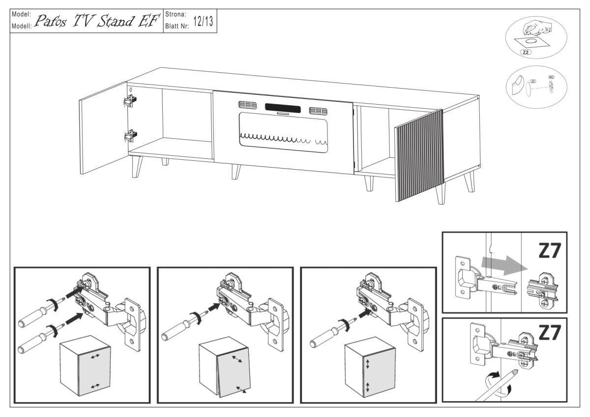 Das besondere Highlight des Modells Pafos EF ist die Möglichkeit, einen Kamin einzubauen – separat erhältlich (Modell CAMA-KOMINEK). Dadurch wird die Kommode zum visuellen und funktionalen Mittelpunkt des Raums. Der elektrische Kamin sorgt für ein angenehmes Ambiente, ohne dass ein zusätzlicher Einbau oder eine Belüftung erforderlich ist – eine vollständig sichere Lösung für Innenräume.