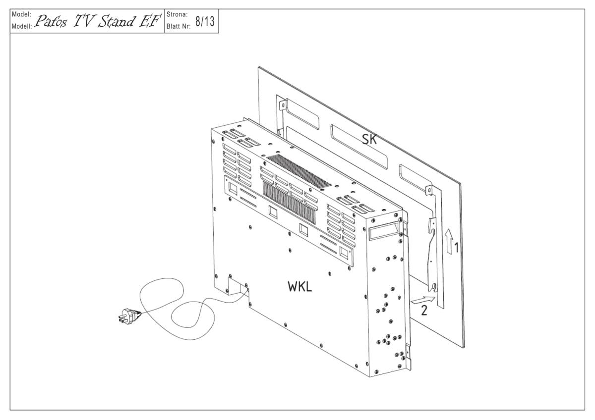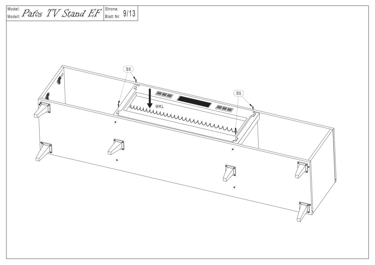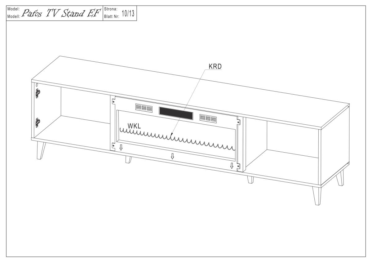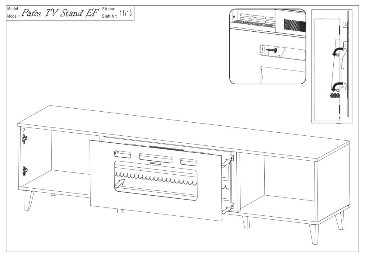 Ein besonderes Highlight der Kommode Pafos EF ist die Möglichkeit, einen elektrischen Kamin zu integrieren. Im mittleren Bereich ist ein Platz vorgesehen, in den ein passendes Kaminmodell (nicht im Lieferumfang enthalten) eingebaut werden kann. So entsteht eine behagliche Atmosphäre und optische Wärme – ganz ohne Rauch oder Ruß. Die Kombination aus matter schwarzer Oberfläche und dem Lichtspiel des Kamins schafft einen markanten Kontrast, der perfekt zu modernen, industriellen oder minimalistischen Einrichtungsstilen passt.
