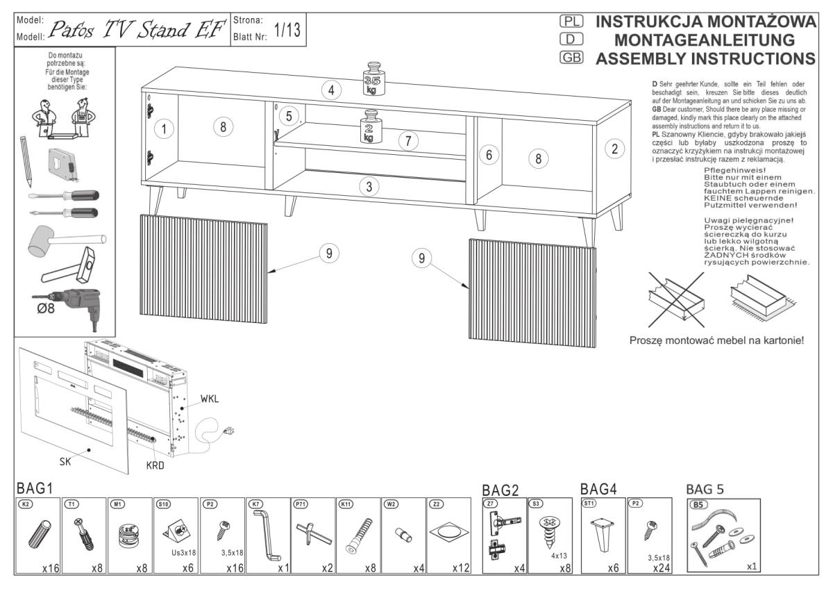 Die TV-Kommode Pafos EF in mattem Schwarz ist ein modernes Möbelstück für Wohnräume, in denen Funktionalität und minimalistisches Design harmonisch zusammenkommen. Hergestellt wird sie in der Halmar-Fabrik in Polen, was für geprüfte Qualität und sorgfältige Verarbeitung steht. Das Besondere an diesem Modell ist die Möglichkeit, einen elektrischen Kamin einzubauen – so lässt sich eine gemütliche Atmosphäre schaffen, ganz ohne bauliche Maßnahmen oder Lüftungssysteme. Mit ihrer Breite von 180,5 cm bietet die Kommode ausreichend Platz für moderne Fernseher und Zubehör und sorgt zugleich für ein ausgewogenes Gesamtbild im Raum.