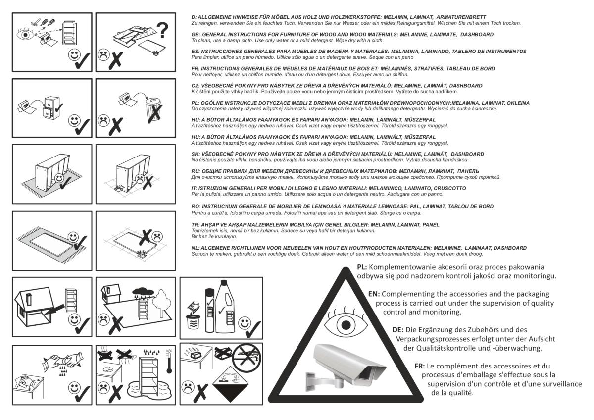 Die Kunststofffüße sorgen für einen sicheren Stand, auch auf leicht unebenen Böden, und schützen zugleich den Boden vor Kratzern. Dank der einfachen Konstruktion lässt sich die Kommode schnell und unkompliziert aufbauen – auch ohne professionelle Hilfe. Die laminierten Oberflächen können mit einem weichen, leicht feuchten Tuch gereinigt werden, ohne aggressive Reinigungsmittel zu benötigen. Das erleichtert die Pflege und verlängert die Lebensdauer des Möbelstücks.