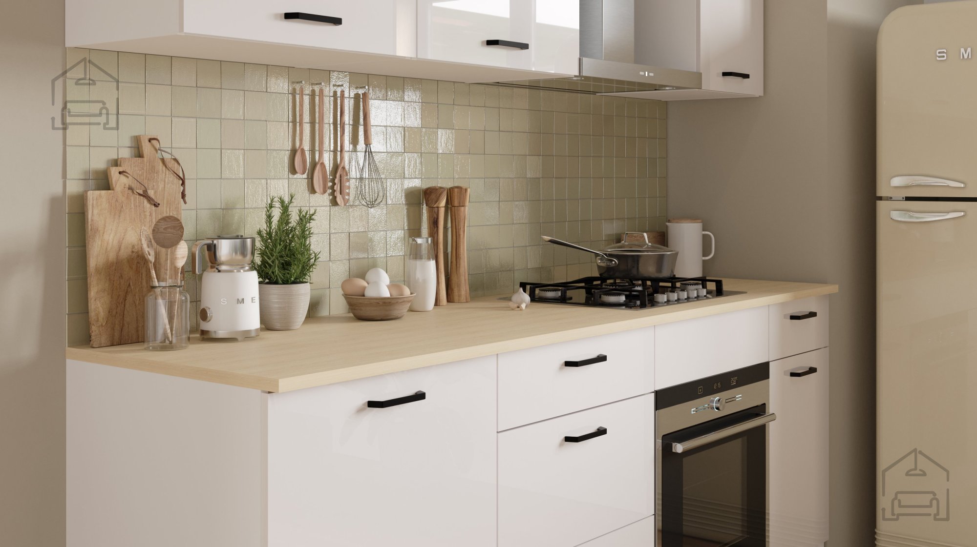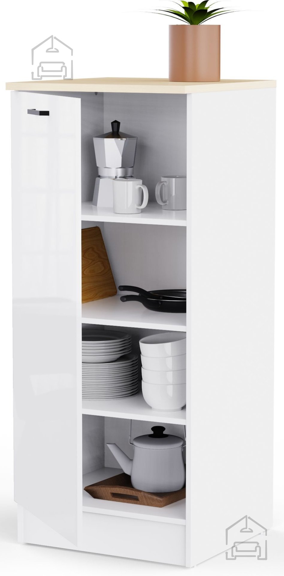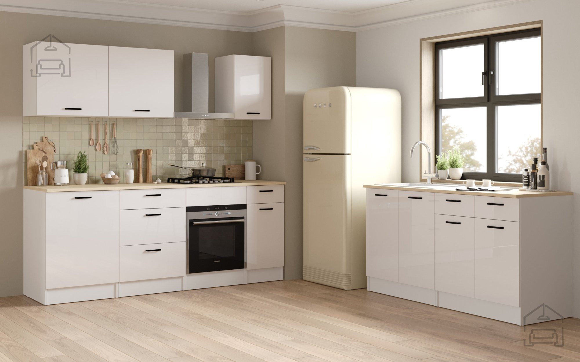 Der Hochschrank Bianco 11 richtet sich an alle, die Ordnung und ein harmonisches Gesamtbild in ihrem Zuhause schätzen. Das hochglänzende Weiß reflektiert das Licht und schafft ein Gefühl von Weite – perfekt für kleinere Küchen oder Räume mit wenig Tageslicht. Das schlichte, geometrische Design ohne überflüssige Details macht ihn vielseitig einsetzbar – sowohl als Solitärmöbel als auch als Teil einer größeren Kücheneinrichtung.