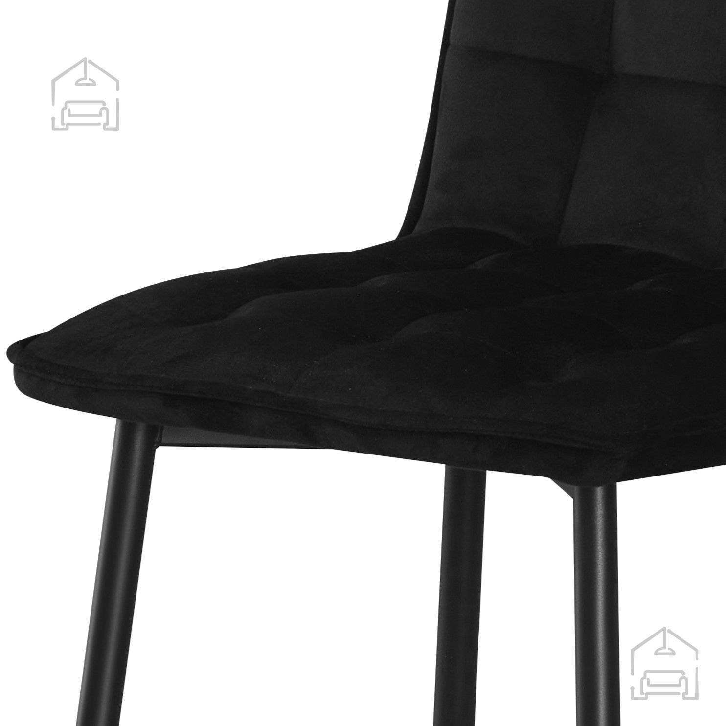 Die Basis des Stuhls bildet ein hochwertiger Metallrahmen, der für festen Halt und eine lange Lebensdauer sorgt. Die stabile Konstruktion ist unempfindlich gegenüber Verformungen und trägt sicher bis zu 130 kg. Sitzfläche und Rückenlehne sind mit einem weichen, zugleich strapazierfähigen Stoff gepolstert, der sich angenehm anfühlt und leicht zu pflegen ist. Der schwarze Farbton verleiht dem Stuhl eine zeitlose Optik, die sowohl zu modernen als auch klassischen Einrichtungsstilen und verschiedensten Esstischen passt.