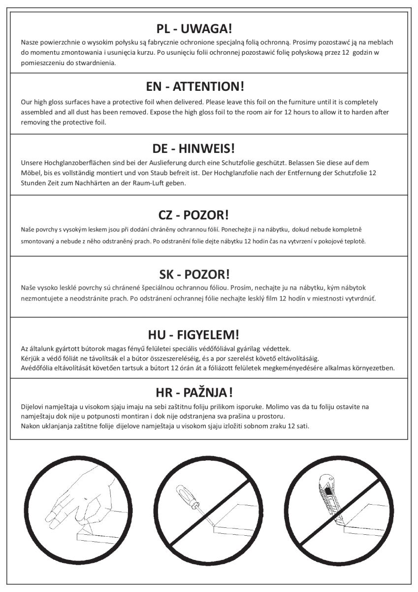 Um den Glanz und die Schönheit der Oberfläche zu erhalten, empfiehlt sich das regelmäßige Abwischen mit einem weichen, leicht feuchten Tuch. Milde, nicht scheuernde Reinigungsmittel sorgen dafür, dass die weiße Hochglanzfläche lange frei von Kratzern und Flecken bleibt. Durch das grifflose Design gibt es keine schwer erreichbaren Ecken, was die Reinigung besonders einfach macht. Die Füße bzw. der Sockel ermöglichen es zudem, den Boden unter der Kommode mühelos sauber zu halten.