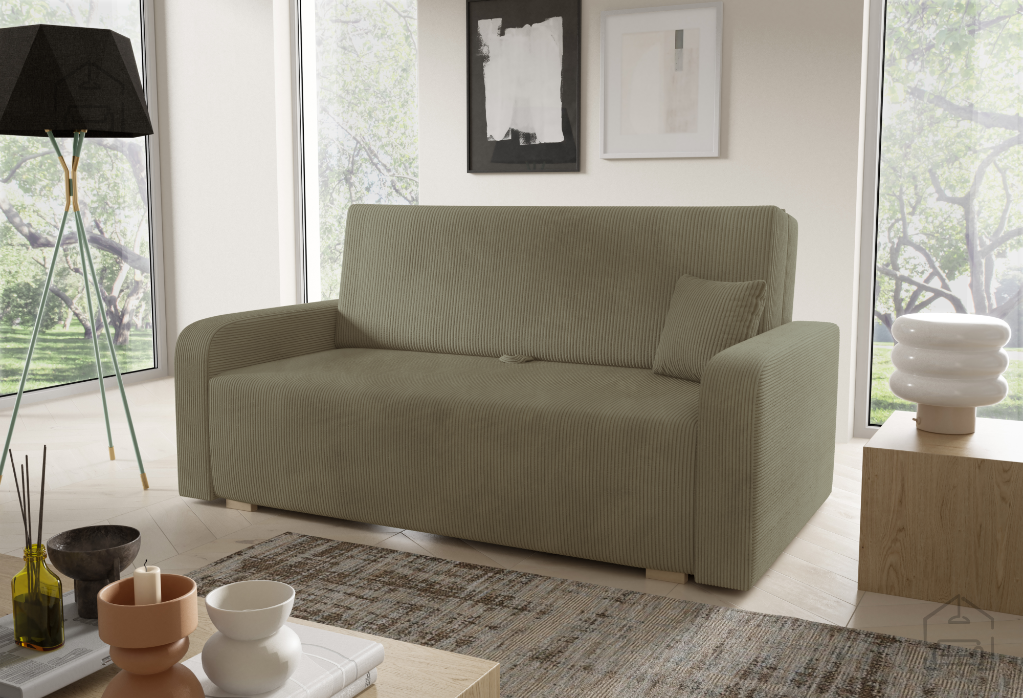 Eine der größten Stärken des Ness 4 ist seine Vielseitigkeit. Dank des Teleskop-Mechanismus lässt sich das kompakte Sofa rasch in eine Liegefläche von 150x196 cm verwandeln. Die Schlafoberfläche ist eben und stabil – ideal für erholsamen Schlaf. Unter dem Sitz befindet sich eine praktische Bettzeuglade, perfekt zum Verstauen von Polstern, Decken oder anderen Textilien. Diese Lösung spart Platz und sorgt für Ordnung im Raum.