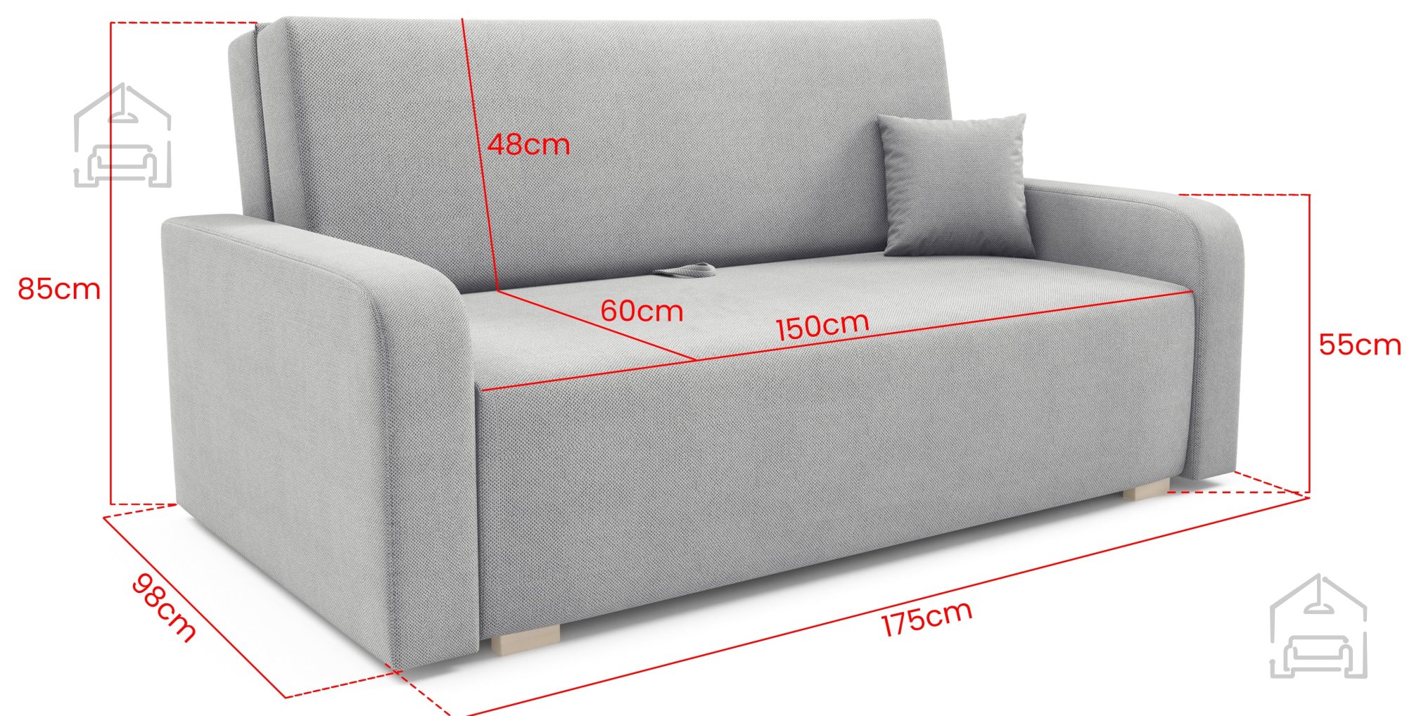 Wenn Sie auf der Suche nach einem bequemen und praktischen Zweisitzer sind, der sich im Handumdrehen in ein gemütliches Bett verwandeln lässt, ist das Modell Ness 4 – PKMebel eine hervorragende Wahl. Es verfügt über einen modernen Teleskop-Mechanismus, der das Ausziehen zu einer Liegefläche von 150x196 cm schnell und mühelos ermöglicht. Dank dieses durchdachten Systems verwandelt sich das Sofa in wenigen Augenblicken in ein komfortables Bett – ideal für den täglichen Gebrauch oder gelegentliche Übernachtungen.