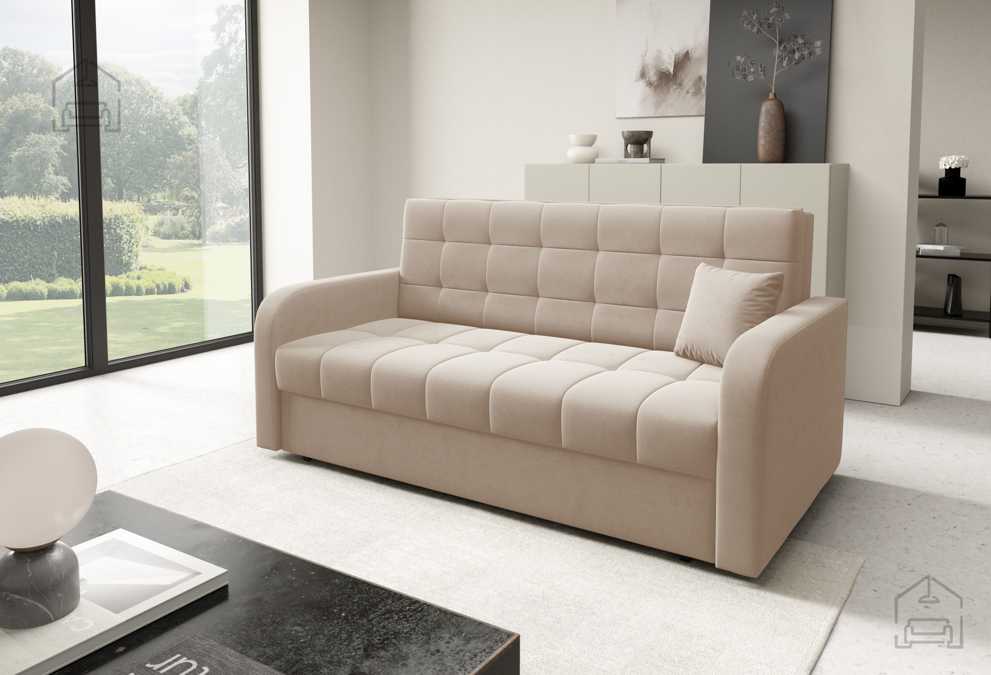Das 2-Sitzer-Sofa Haven 4 ist eine ausgewogene Kombination aus Funktionalität, Komfort und modernem Design – ideal für den täglichen Gebrauch in Kinder- oder kleineren Wohnzimmern. Gefertigt wird es in der Fabrik Sitzgarnituren PKMebel in Polen, wo auf sorgfältige Verarbeitung, langlebige Materialien und durchdachte Konstruktion großer Wert gelegt wird. Das Modell Haven 4 überzeugt durch einen praktischen Teleskop-Mechanismus, der ein schnelles und einfaches Ausziehen zu einer Liegefläche ermöglicht, sowie durch eine nützliche Bettzeuglade, die zusätzlichen Stauraum bietet.
