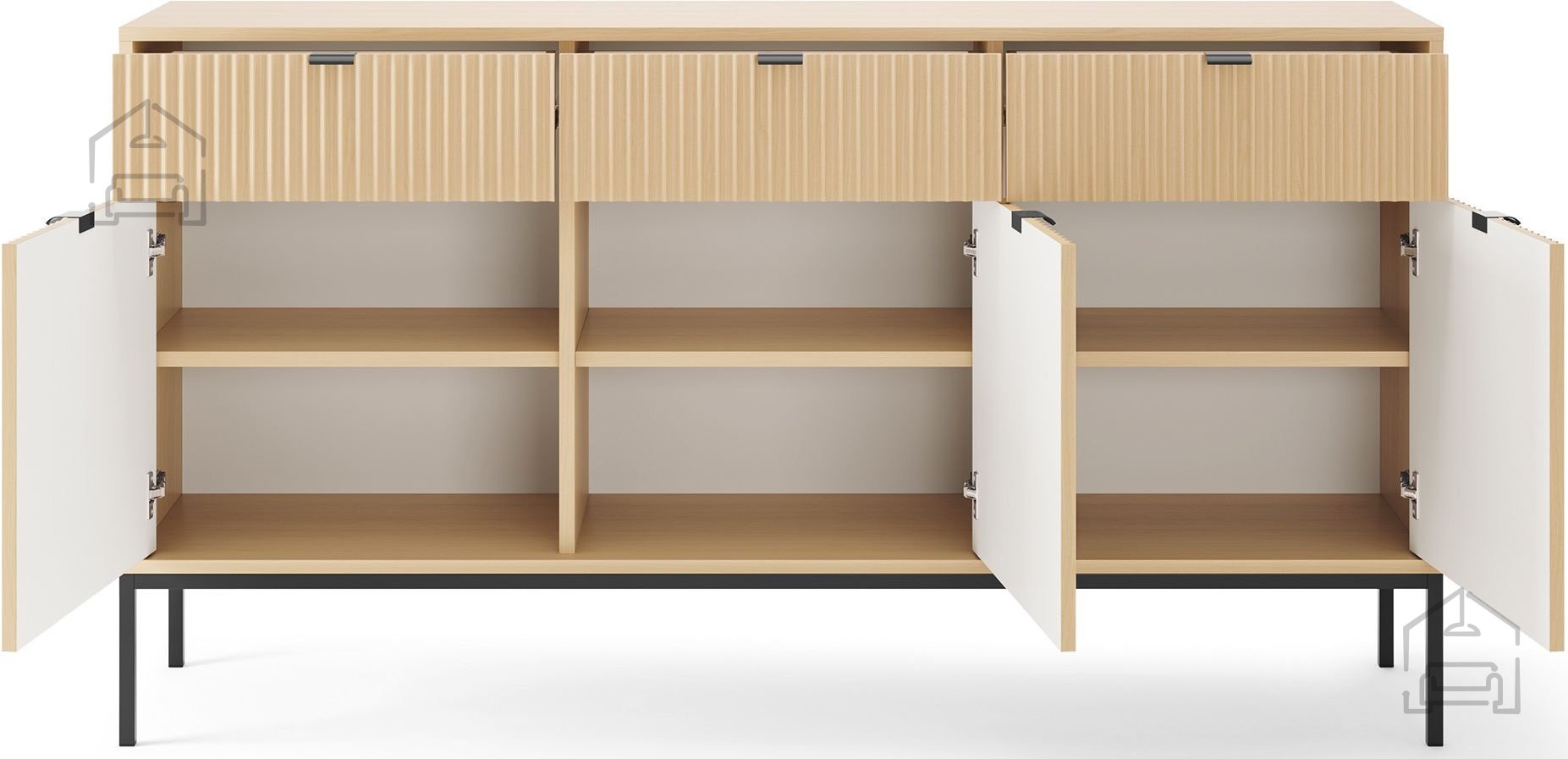 Die laminierte Oberfläche lässt sich einfach reinigen – ein weiches Tuch und ein mildes Reinigungsmittel genügen. Das Material nimmt keine Feuchtigkeit auf und behält seinen schönen Look auch nach vielen Jahren. Die Metallteile sind mit einer widerstandsfähigen Beschichtung versehen, die vor Rost und Abnutzung schützt. So bleibt die Kommode Nova KSZ154 lange schön, ohne besonderen Pflegeaufwand.