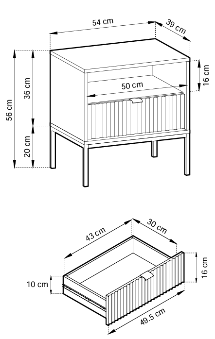 Der Nachttisch Nova S54 ist nicht nur ein optisches Highlight, sondern auch ein praktisches Möbelstück. Seine Maße bieten eine ideale Höhe neben dem Bett, sodass Sie Lampe, Buch, Handy oder Wasserglas stets griffbereit haben. Die Kombination aus Schublade und offenem Fach schafft ausreichend Stauraum und sorgt gleichzeitig für ein luftiges, aufgeräumtes Gesamtbild im Schlafzimmer.