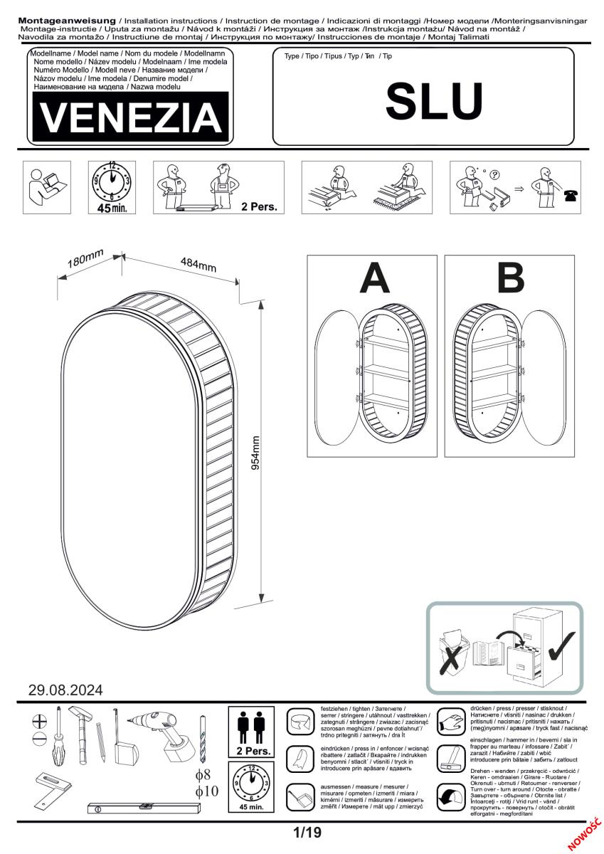 Das Modell Venezia 1D ist ideal für den täglichen Gebrauch – sowohl in kleinen als auch in großzügigen Badezimmern. Durch seine kompakte Tiefe von 19 cm schränkt er die Bewegungsfreiheit nicht ein, bietet aber dennoch überraschend viel Stauraum. Dank der grifflosen Front und der klaren Linien fügt sich der Schrank dezent in die Wandgestaltung ein und vermittelt ein luftiges, offenes Raumgefühl. Aufgrund seines universellen Designs lässt er sich leicht mit anderen Elementen der Venezia-Kollektion oder mit verschiedenen Badezimmerserien kombinieren.