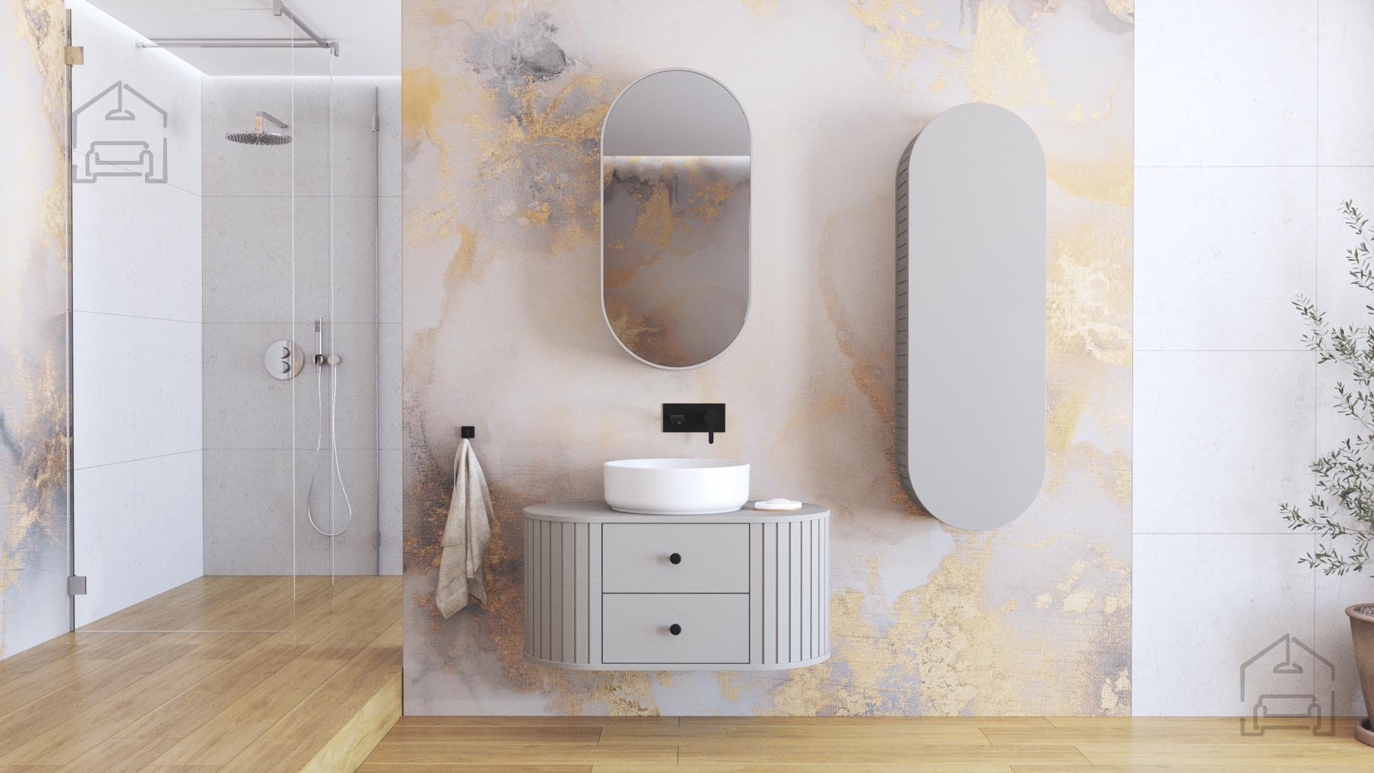 Die Farbe Grau mit mattem Kaschmir-Effekt verleiht dem Schrank eine besondere Note, die sich sowohl in moderne, minimalistische als auch klassisch eingerichtete Badezimmer harmonisch einfügt. Sanfte Linien und der Verzicht auf Griffe schaffen ein klares, elegantes Erscheinungsbild. Die Oberfläche ist unempfindlich gegenüber Fingerabdrücken – praktisch im täglichen Gebrauch.