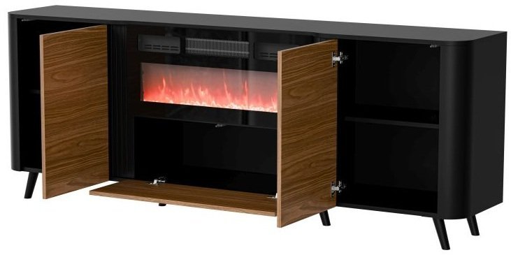 Die Kommode Volare 200 EF mit Kaminoption – Halmar ist eine ausgezeichnete Wahl für alle, die modernes Design, praktische Funktionalität und wohnliche Wärme schätzen. Durch ihre elegante Form, sorgfältig ausgewählten Materialien und durchdachten Details vereint sie Ästhetik und Komfort auf harmonische Weise. Die matte schwarze Oberfläche im Kontrast zum Nussdekor sorgt für eine stilvolle Dynamik, während der mögliche Kamineinbau einen Hauch von Luxus verleiht. Diese Kommode ist weit mehr als nur ein Möbelstück – sie wird zum Mittelpunkt des Raumes, der Schönheit, Wärme und Funktionalität perfekt vereint.