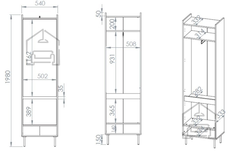 Der Schrank steht auf 15 cm hohen Füßen, die ihm eine leichte, schwebende Optik verleihen und das Reinigen des Bodens darunter erleichtern. Die Höhe der Füße trägt zusätzlich zur Stabilität bei, da sie das Gewicht gleichmäßig verteilt. Alle Elemente sind präzise verarbeitet, was den Aufbau erleichtert und für eine feste Verbindung der einzelnen Teile sorgt – so bleibt der Schrank auch langfristig stabil und robust.