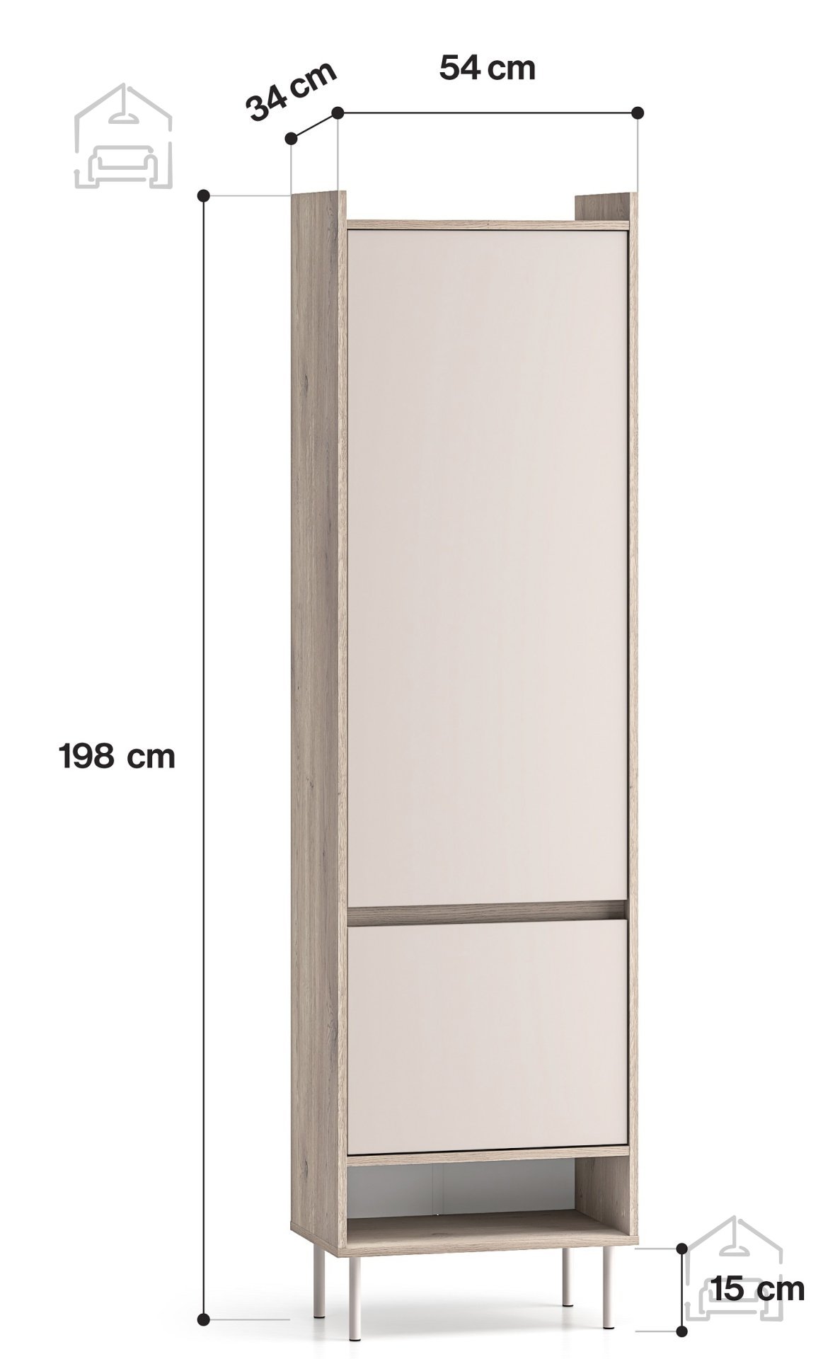 Dank seiner kompakten Maße und seines eleganten Designs eignet sich Voco 01 für viele Wohnbereiche. Im Vorzimmer dient er als praktische Garderobe für Alltagskleidung und Schuhe, im Schlafzimmer als zusätzlicher Stauraum für saisonale Teile, und im Jugendzimmer hilft er, Ordnung zu halten. Durch die neutrale Farbpalette lässt sich der Schrank problemlos mit anderen Möbelstücken derselben Kollektion oder mit bestehender Einrichtung kombinieren.