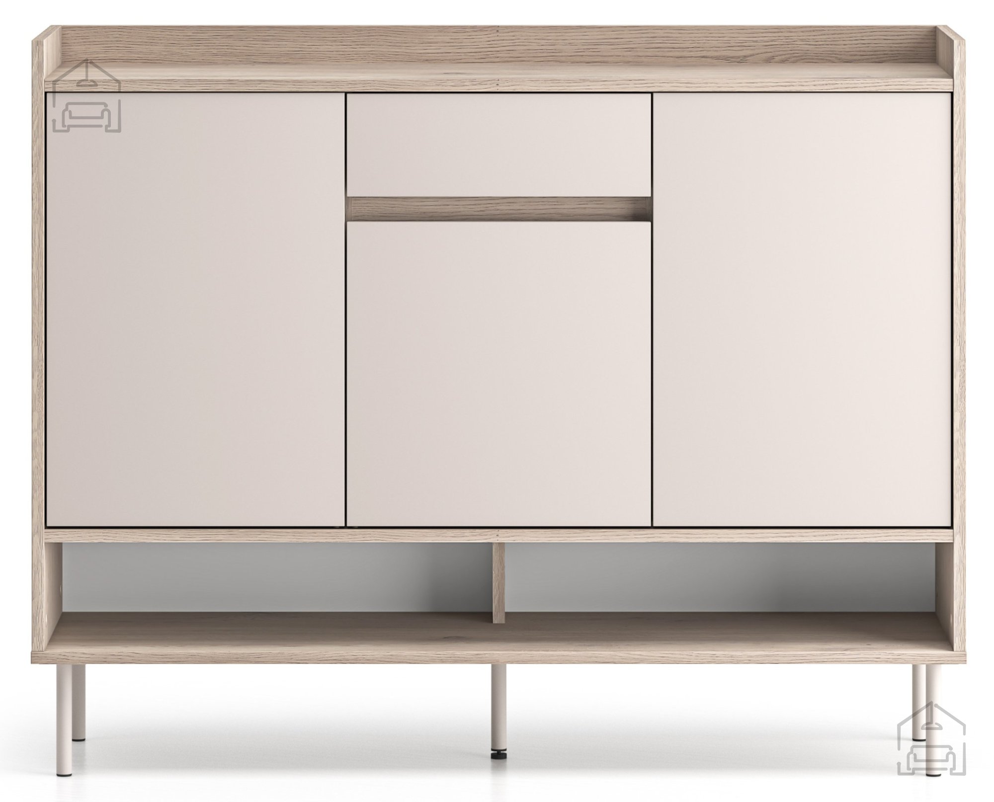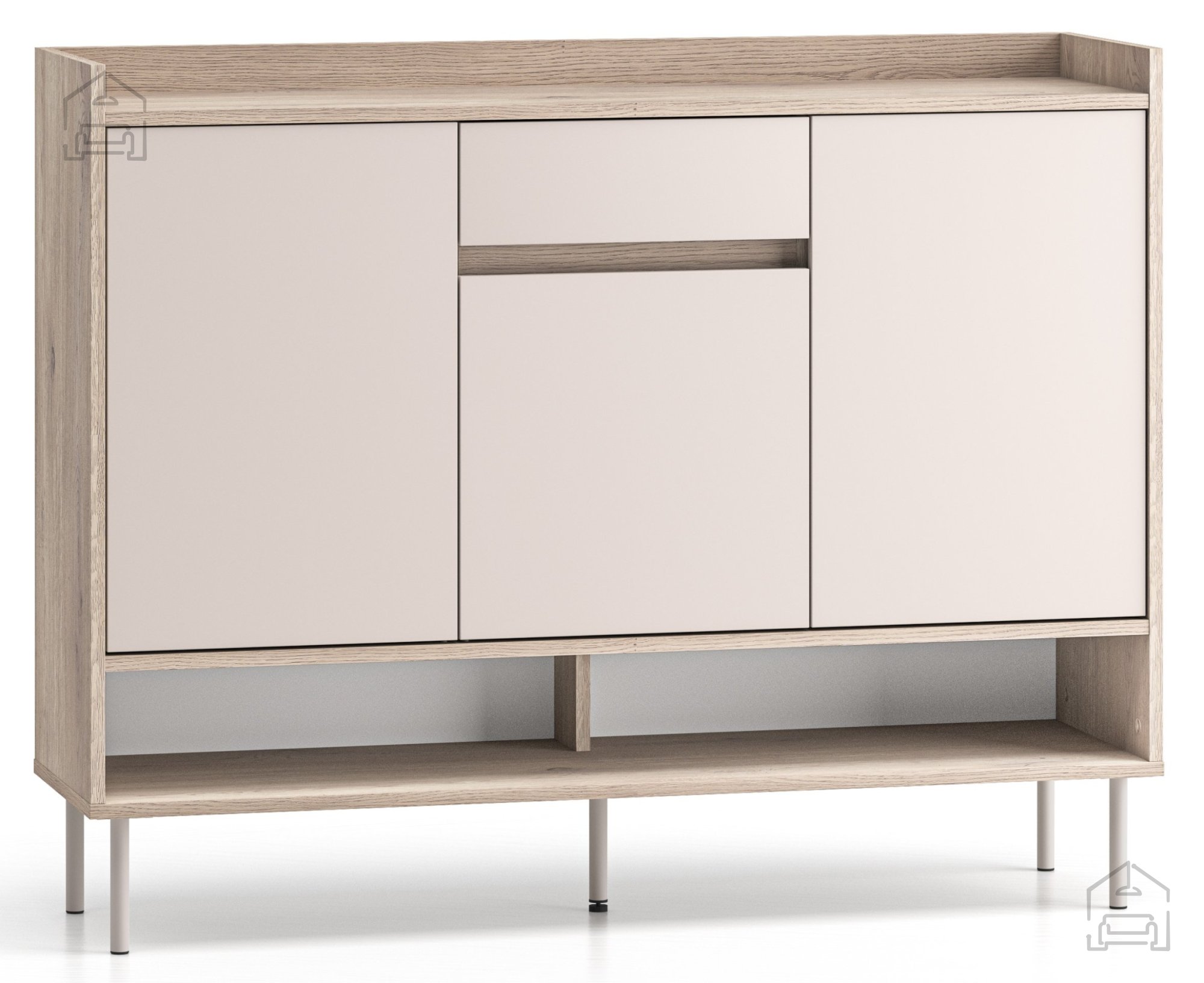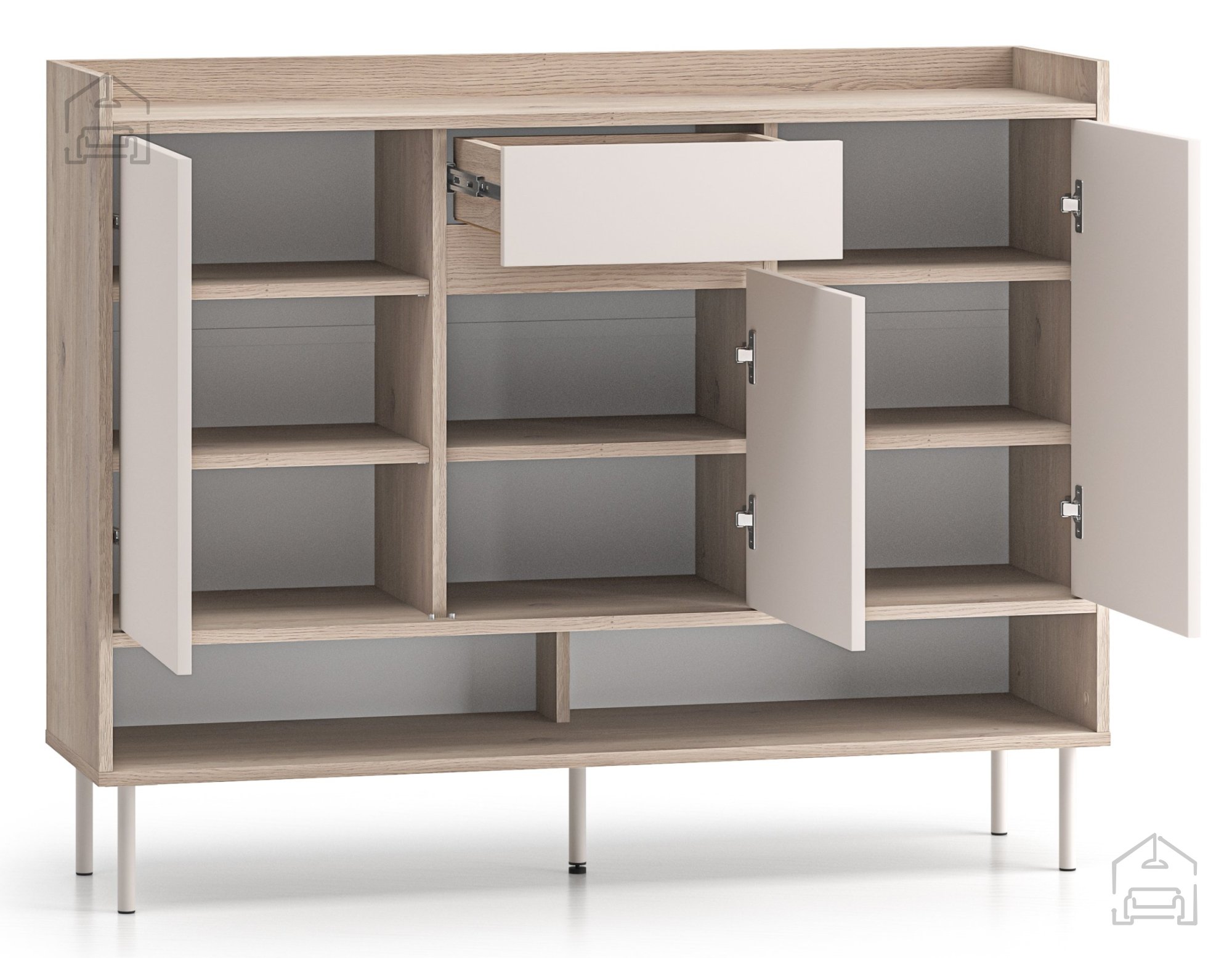 Die Kombination aus Kaschmir und Eiche Cremona Terracotta verleiht dem Möbelstück einen natürlichen, zugleich modernen Look. Der warme Eichenton harmoniert wunderbar mit dem helleren Kaschmirfarbton und schafft ein Gefühl von Ausgeglichenheit und Behaglichkeit. So lässt sich der Schrank mühelos in verschiedenste Einrichtungsstile integrieren – ob skandinavisch, modern oder rustikal.