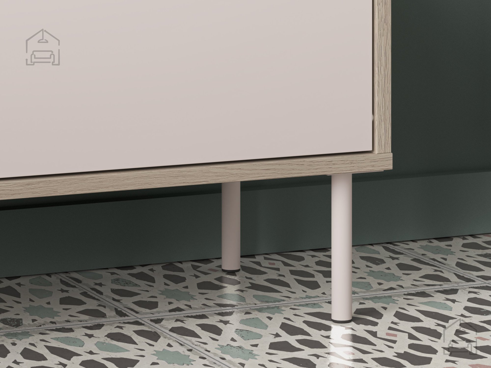 Der Schrank besteht aus 16 mm dicken Spanplatten, die mit einer schützenden Laminatschicht versehen sind. Diese erhöht die Widerstandsfähigkeit gegen Abnutzung, Kratzer und Feuchtigkeit. Die Rückwand ist aus HDF-Platte gefertigt und sorgt für Stabilität und Festigkeit der gesamten Konstruktion. Die Kanten sind mit ABS-Band geschützt, das Absplitterungen vermeidet und vor Beschädigungen schützt. Ein besonderes optisches Highlight ist die samtig gepolsterte Front, die dem Möbelstück eine weiche und edle Note verleiht.