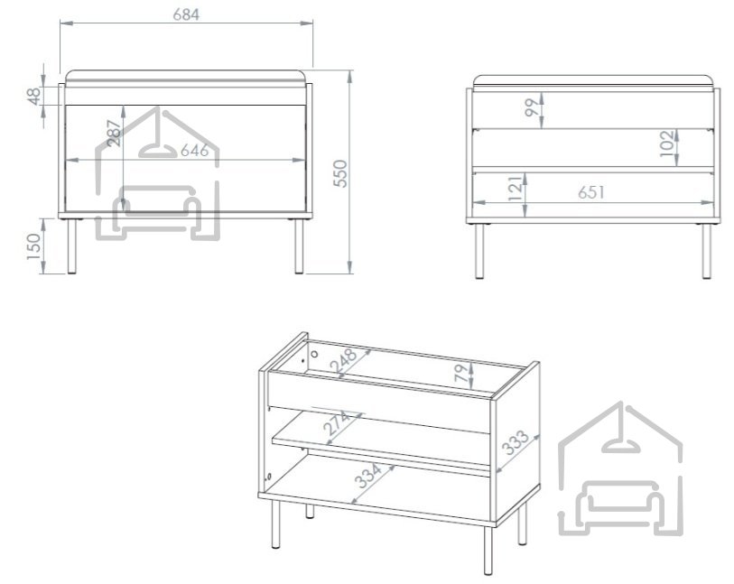Die samtige Polsterung auf der Sitzfläche ermöglicht es, den Schrank auch als Sitzbank beim Anziehen zu verwenden – besonders praktisch in kleineren Räumen. Die weiche Oberfläche sorgt für Bequemlichkeit, während die stabile Konstruktion bis zu 100 kg trägt. Dank der hochwertigen Materialien und der sorgfältigen Verarbeitung behält der Schrank sein ansprechendes Aussehen und seine Funktionalität auch nach langer Nutzung.