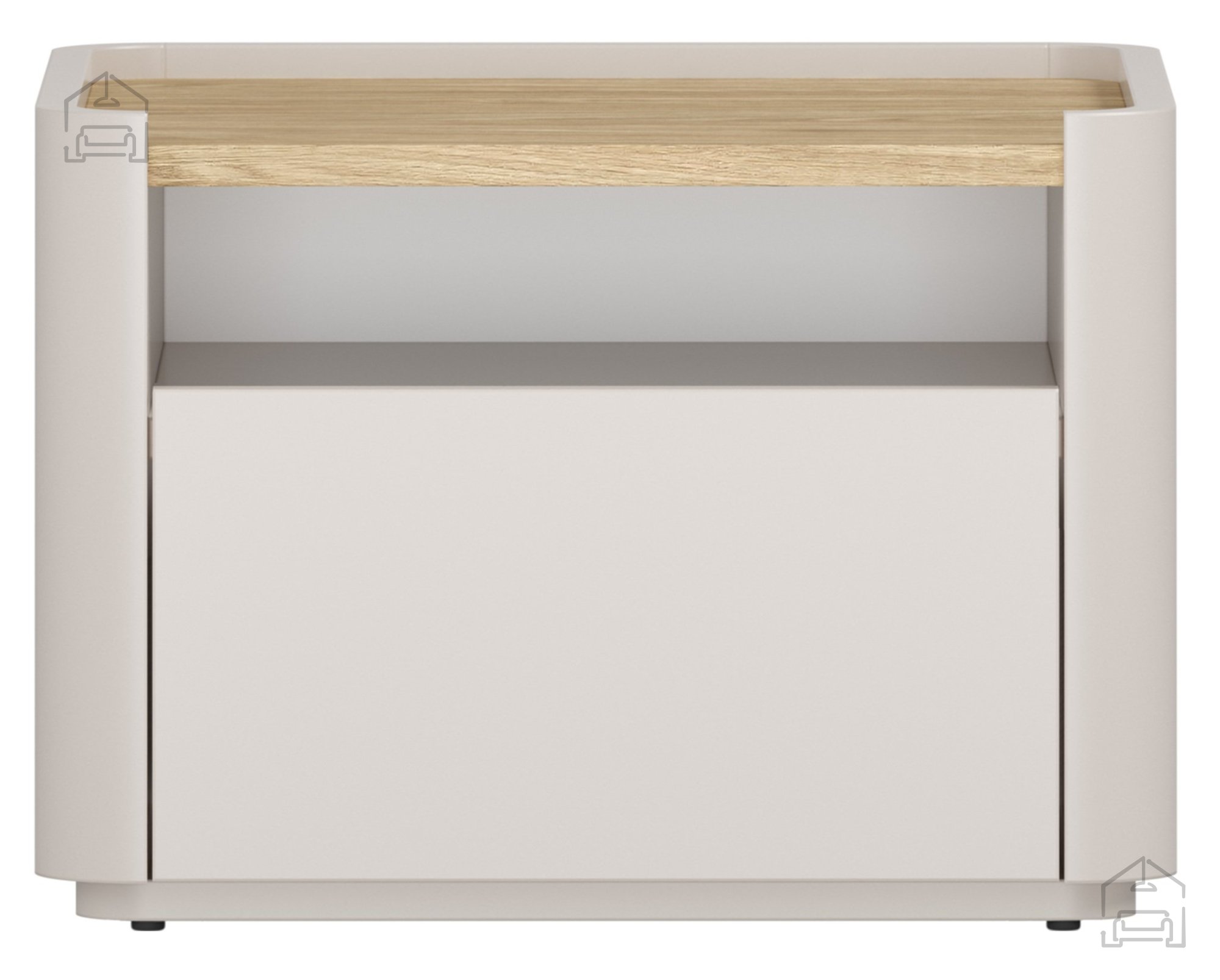 Der Nachttisch Elivo 50 1SZ ist ein modernes Möbelstück, das klare Ästhetik, Funktionalität und die Wärme von Echtholz vereint. Die Kombination aus einem sanften Kaschmirfarbton und der geölten Eichenplatte sorgt für eine gemütliche Atmosphäre, während die schlichten Linien und die hochwertige Verarbeitung für Langlebigkeit stehen. Mit seinen kompakten Maßen von 48 × 48 × 35,5 cm passt er ideal neben das Bett im Schlafzimmer oder im Gästezimmer und bietet ausreichend Platz für eine Lampe, ein Buch oder persönliche Gegenstände.
