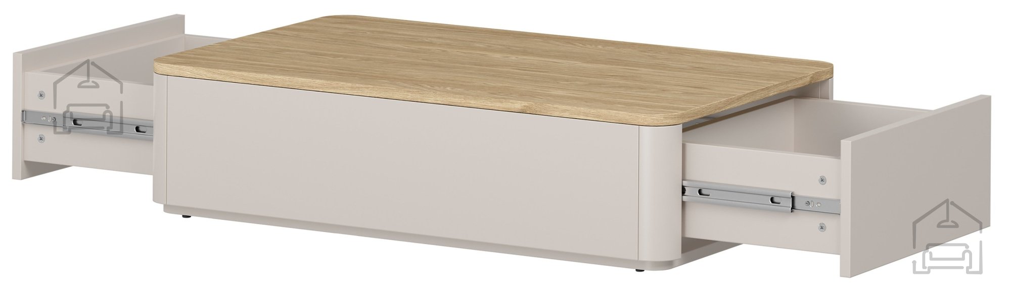 Der Elivo 100 2SZ verfügt über zwei großzügige Staufächer, die mit kugelgelagerten Schienen geöffnet werden. Das Soft-Close-System sorgt für leises, sanftes Schließen und erhöht so die Lebensdauer der Schubladen und den Bedienkomfort. Praktisch ist auch die nach oben öffnende Mechanik, die den Zugriff erleichtert und einen guten Überblick über den Inhalt bietet. Diese Details sind ideal für alle, die Ordnung im Wohnzimmer schätzen, ohne auf Design zu verzichten.