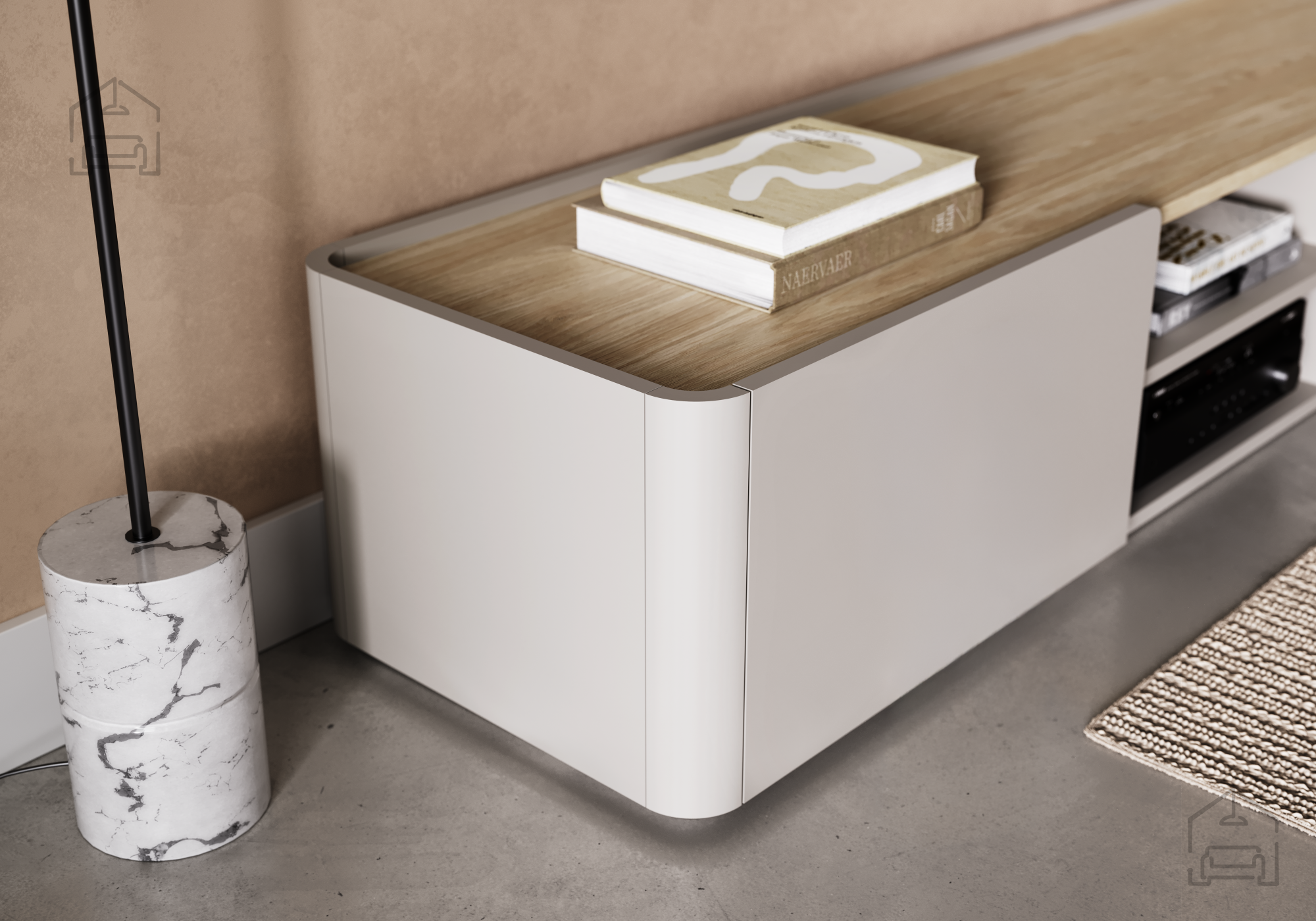 Melaminplatte und MDF 18 mm: TV-Kommode Elivo 220 1K1SZ – Bogart.