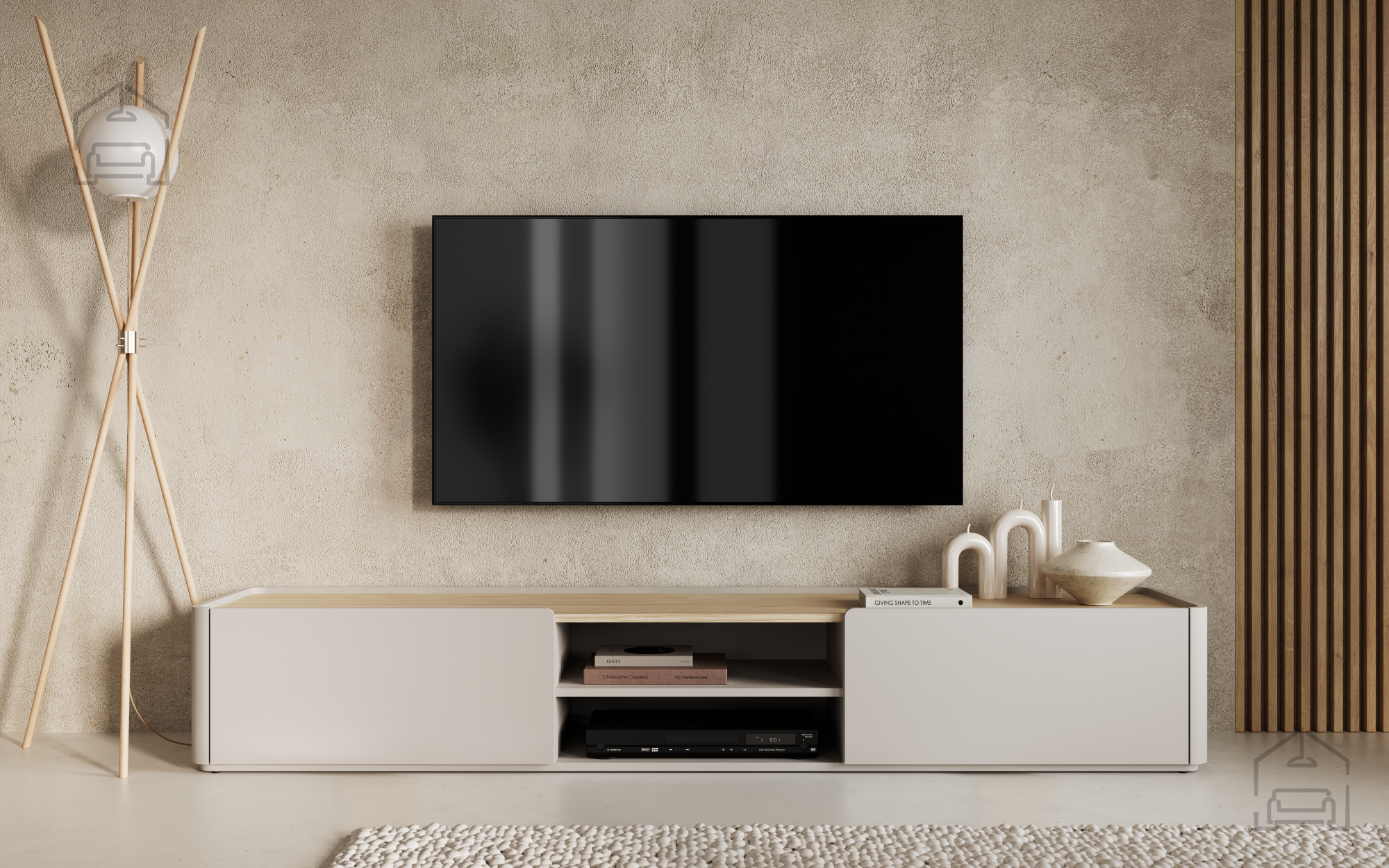 Der moderne, minimalistische und skandinavische Stil der Elivo-Kommode lässt sich wunderbar mit Möbeln aus natürlichen Materialien, weichen Textilien oder metallischen Akzenten kombinieren. Dank der neutralen Farbpalette aus Kaschmir und Eiche harmoniert sie mit verschiedensten Wandfarben, Bodenbelägen und Accessoires. Je nach Platzierung und Beleuchtung kann sie als stilvolles Highlight im Raum wirken oder sich dezent ins Gesamtbild einfügen.
