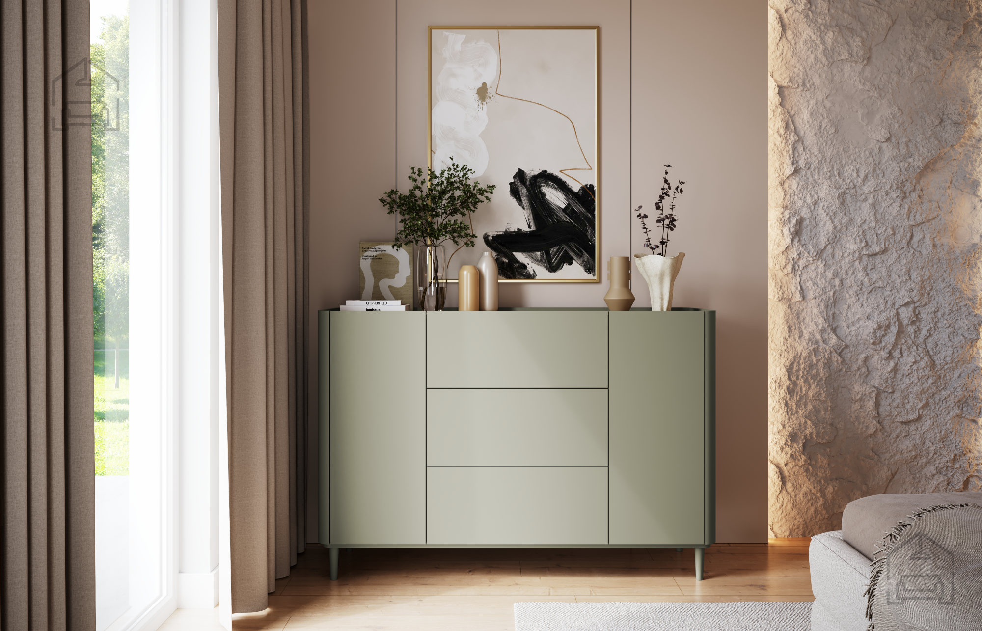 Der universelle Stil der Kommode harmoniert wunderbar mit modernen, skandinavischen oder Japandi-Einrichtungen. Sie passt hervorragend zu hellen Wänden, Naturholz und Accessoires in erdigen Farbtönen – ideal für Räume, in denen sowohl Funktionalität als auch Ästhetik zählen.