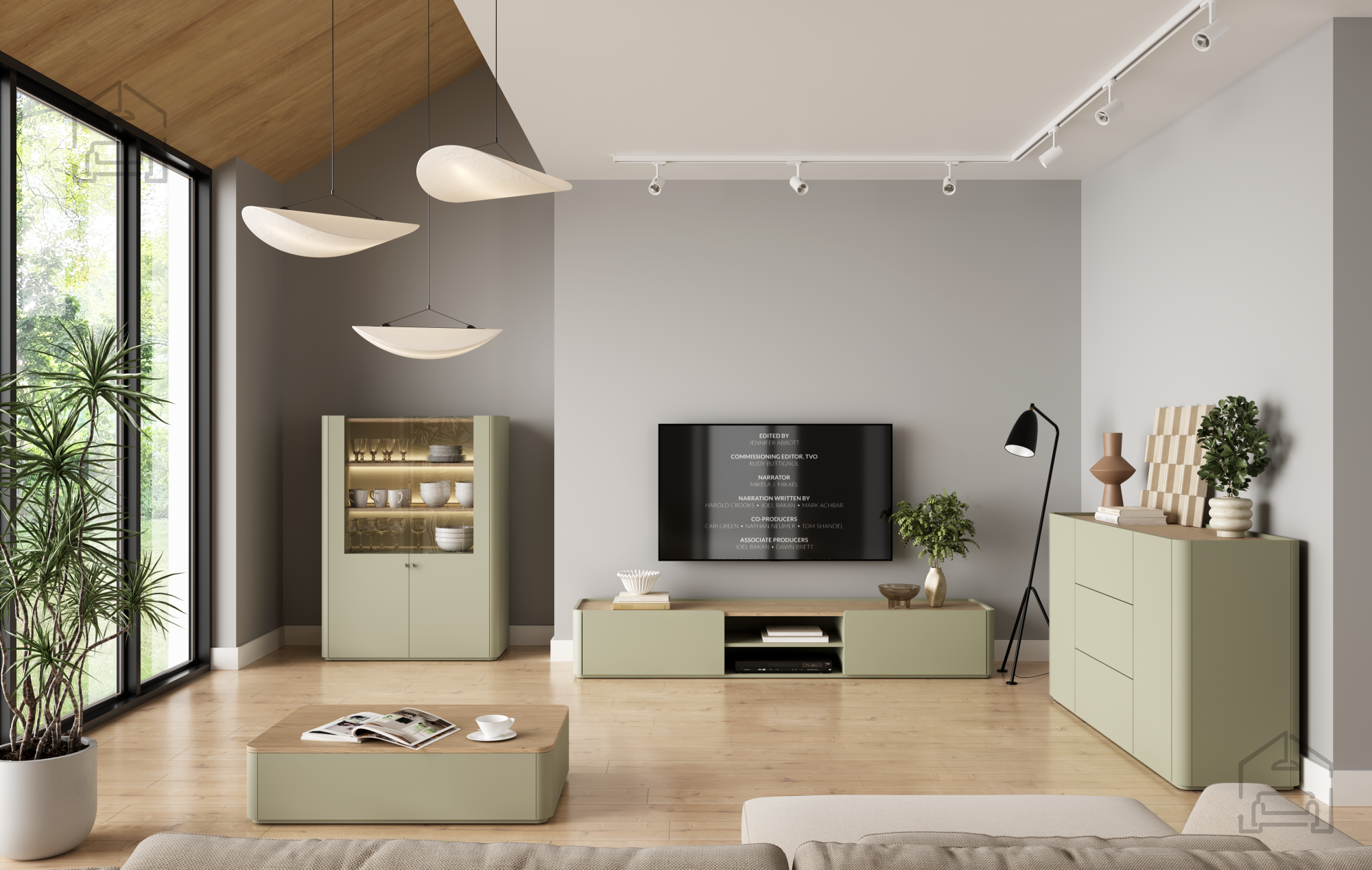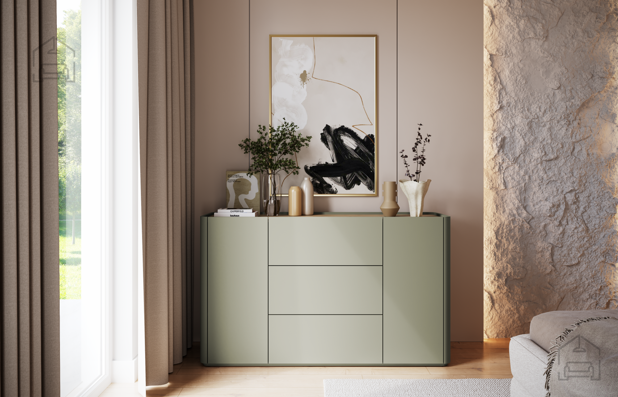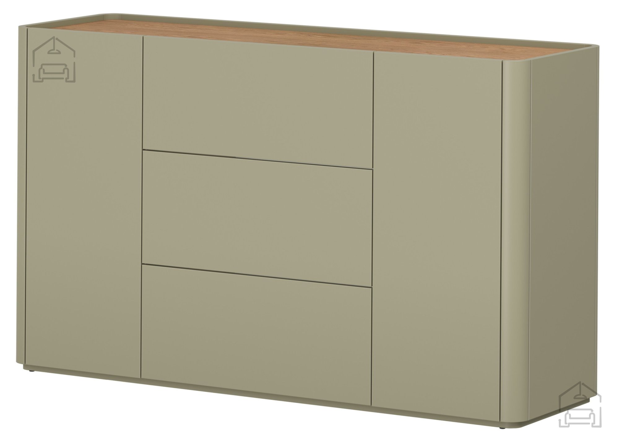 Die Farbgestaltung in Eukalyptus und baltischer Dune‑Eiche lässt sich mühelos mit anderen Möbelstücken kombinieren. Die Kommode Elivo 150 2D3SZ harmoniert sowohl mit neutralen Wand‑ und Bodenfarben als auch mit modernen Interieurs, in denen natürliche Materialien und klare Linien dominieren. Durch ihr ausgewogenes Design kann sie einzeln stehen oder Teil eines größeren Möbelensembles derselben Serie sein. Ihre Farbgebung passt in helle wie auch dunklere Räume und schafft stets ein Gefühl von Wärme und Ausgeglichenheit.