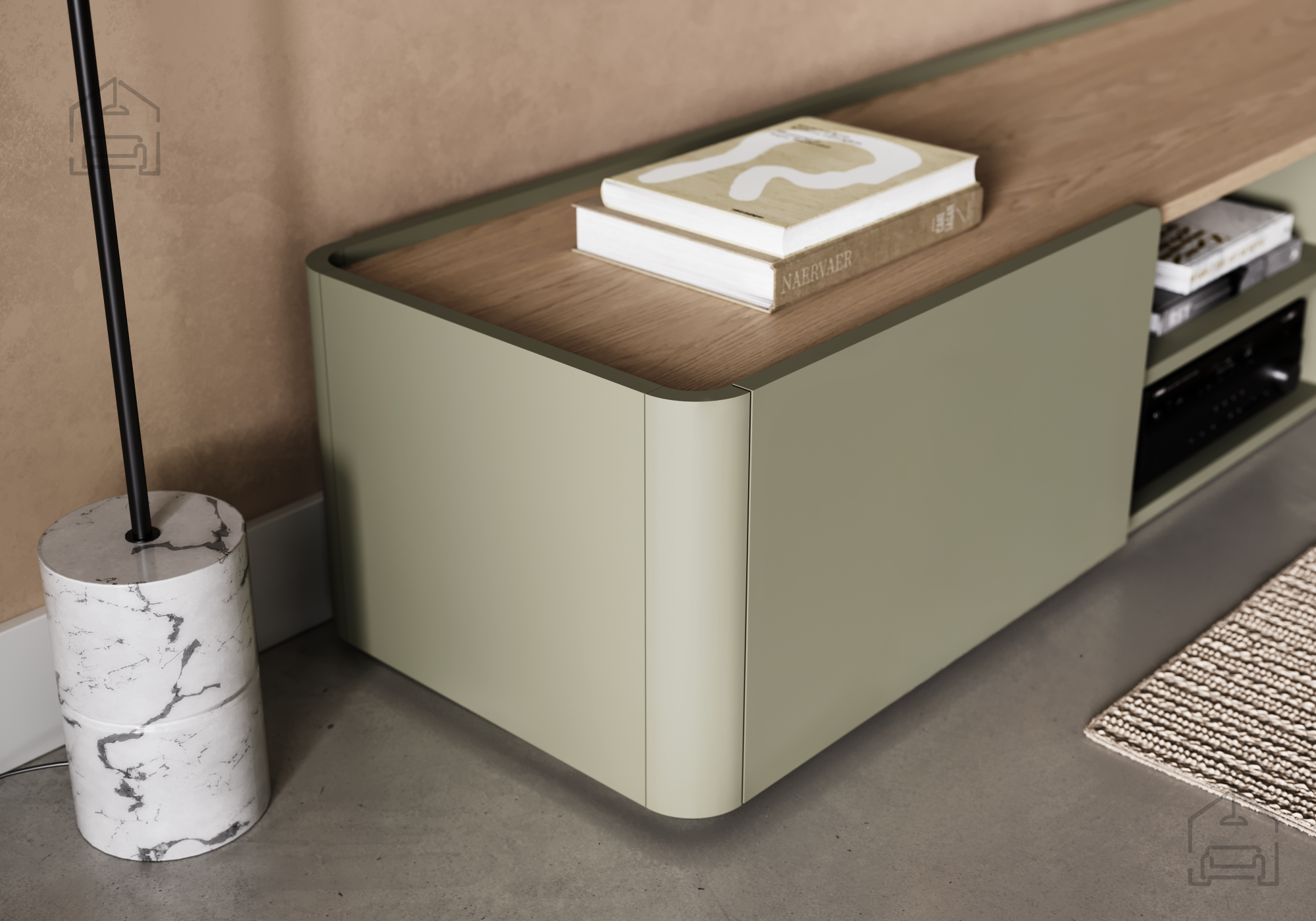 Melaminplatte und massives Buchenholz: TV-Kommode Elivo 220 1K1SZ – Bogart.