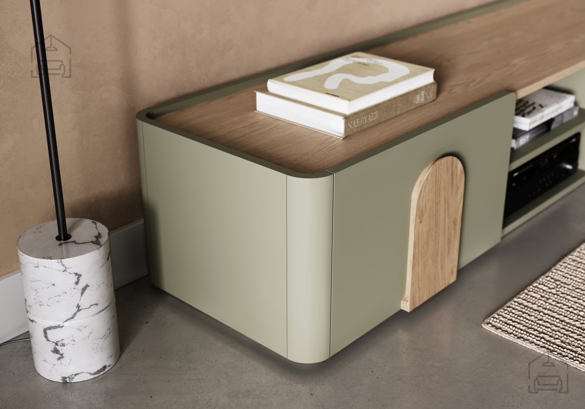 Die TV-Kommode Amilio 220 1K1SZ ist mit einem Soft‑Close‑System ausgestattet, das Türen und Schubladen sanft und leise schließt. Dadurch werden Stöße vermieden und die Lebensdauer der Beschläge verlängert. Im Inneren ist der Stauraum so aufgeteilt, dass Geräte, Kabel, Fernbedienungen oder Dokumente ordentlich verstaut werden können. Auf der Rückseite befindet sich eine Kabelöffnung, die für eine saubere Kabelführung sorgt und das Gesamtbild aufgeräumt hält.