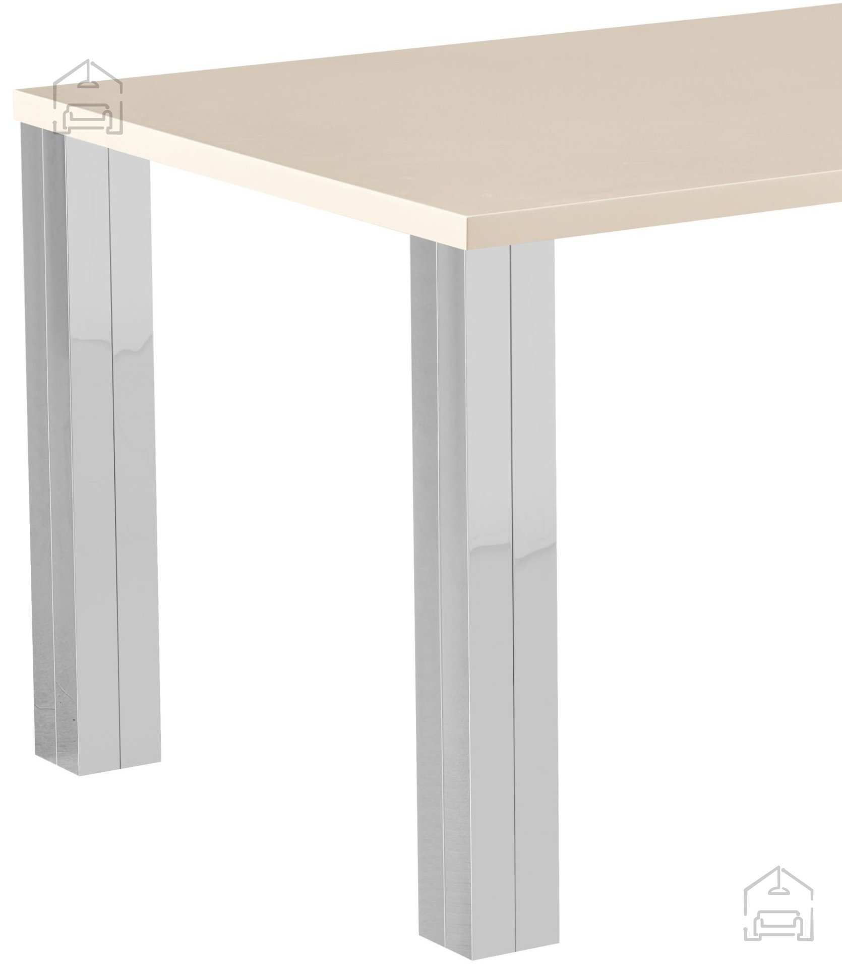 Getragen wird die Platte von einem robusten Metallrahmen, der zusätzlich beschichtet ist, um noch besser geschützt zu sein. Die eckigen Metallbeine sorgen für Stabilität und eine gleichmäßige Gewichtsverteilung. Diese Kombination aus MDF und Metall bietet ein ausgewogenes Erscheinungsbild und eine langlebige Konstruktion.