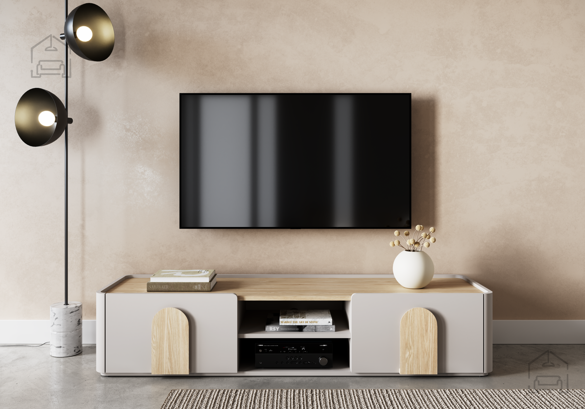 Die TV‑Kommode Amilio 170 1K1SZ der Marke Bogart vereint Funktionalität und ansprechendes Design im modernen skandinavischen Stil. Sorgfältig aus hochwertigen Platten gefertigt, überzeugt sie durch Stabilität, Langlebigkeit und ein elegantes Erscheinungsbild, das sich harmonisch in unterschiedliche Wohnbereiche einfügt. Die Farbkombination aus Kaschmir und geölter Eiche mit hellen Eichen‑Griffen sorgt für eine angenehme Wärme und ergänzt eine minimalistische Einrichtung perfekt. Eine ideale Wahl fürs Wohnzimmer, wenn praktische Nutzung und stilvolles Design Hand in Hand gehen sollen.