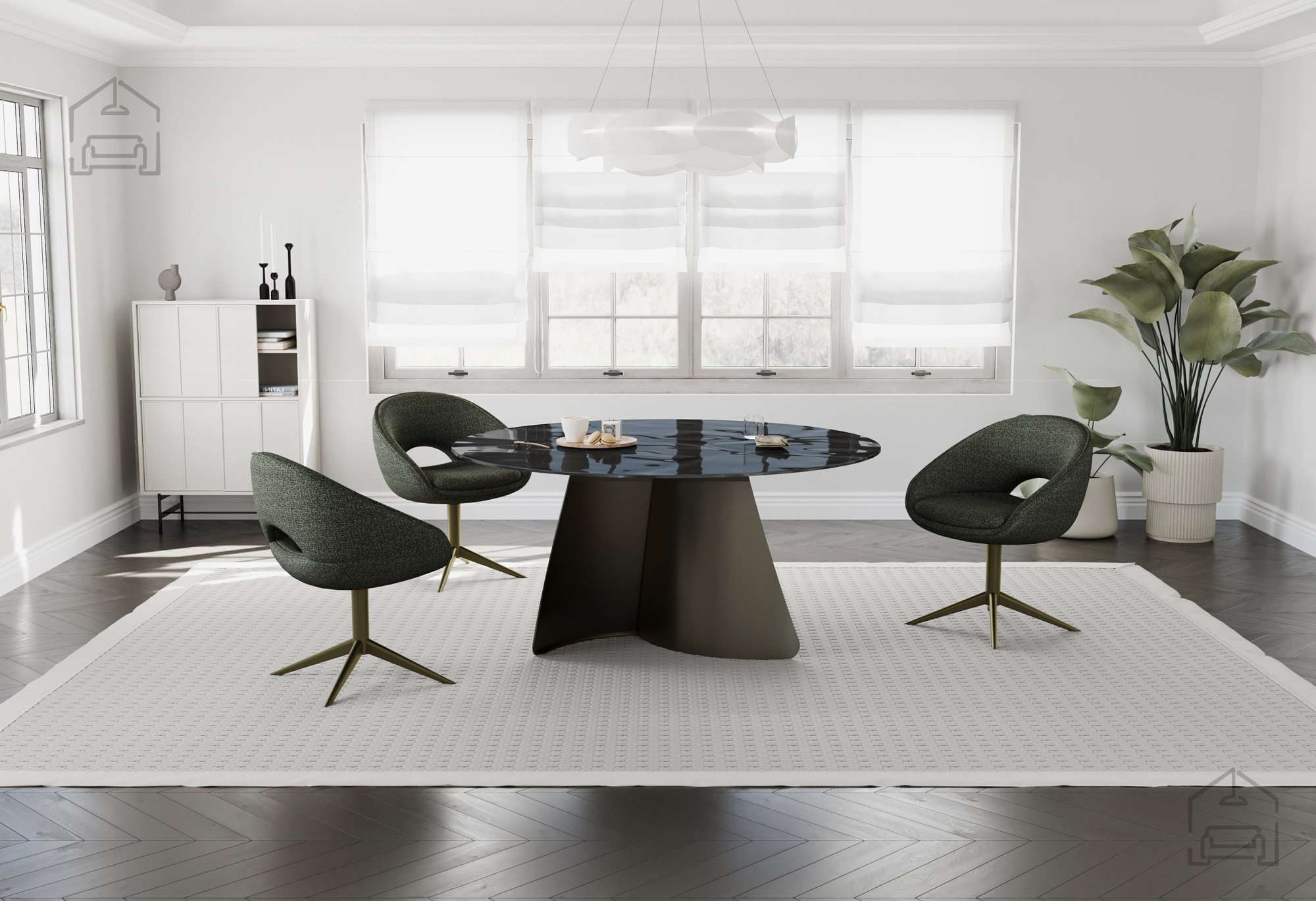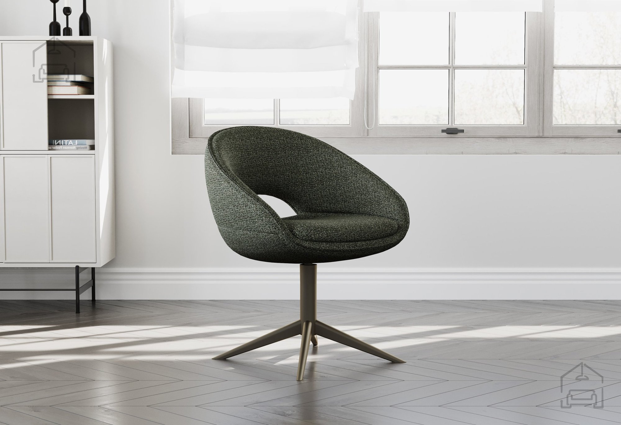 Der drehbare Stuhl Borneo ist eine vielseitige Wahl für Wohn- und Arbeitsbereiche. Durch den 360°-Mechanismus lässt er sich leicht drehen – praktisch beim Arbeiten am Tisch oder in Gesprächssituationen. Dank seines modernen Designs passt er gut zu minimalistischen Einrichtungen oder Räumen mit natürlichen Farbtönen, wobei das Grün eine ruhige und frische Atmosphäre schafft.