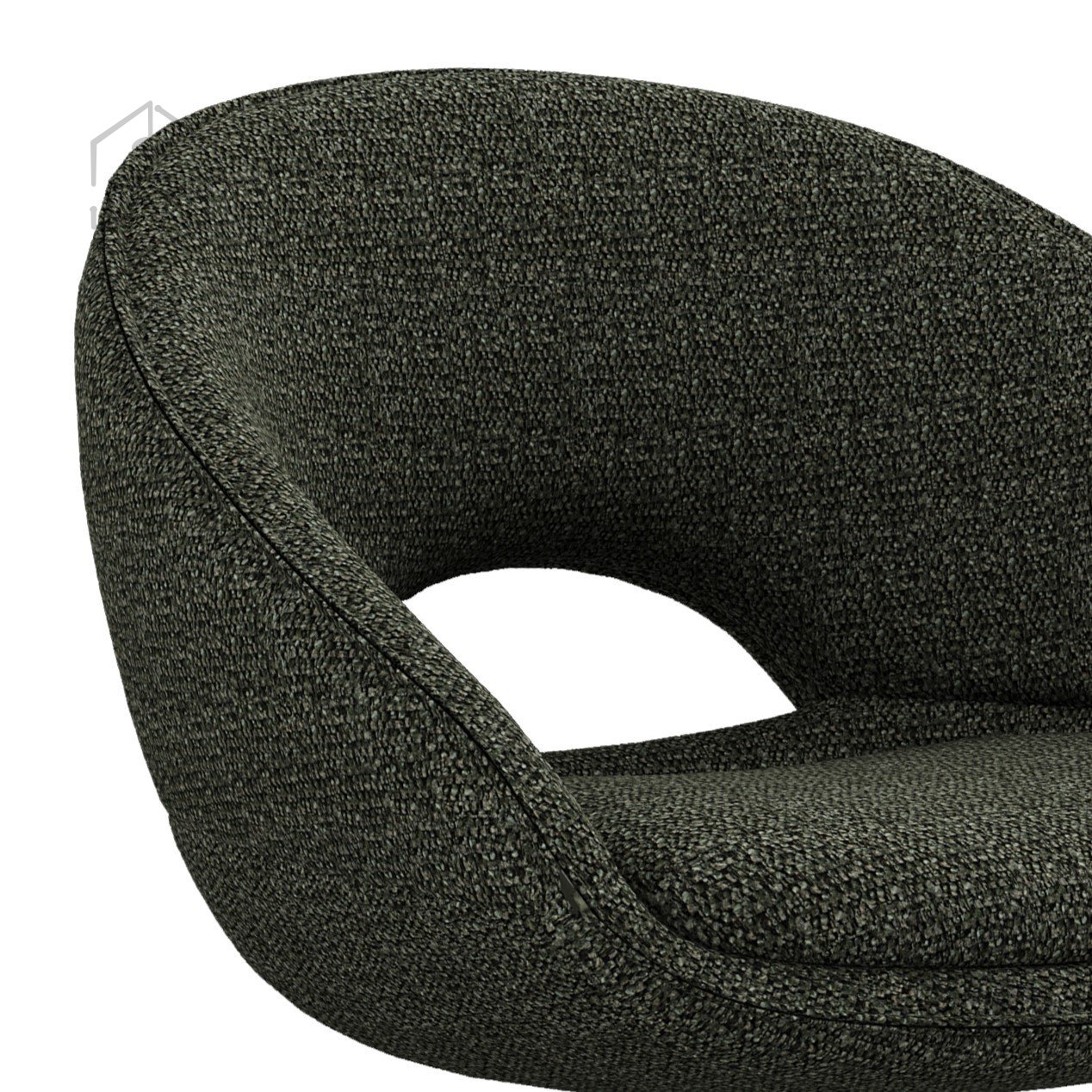 Das charakteristische Merkmal des Stuhls Borneo ist der hochwertige, grüne Stoff, der Frische und natürliche Eleganz ausstrahlt. Die Oberfläche fühlt sich angenehm an, ist strapazierfähig und pflegeleicht – perfekt geeignet für Wohnzimmer, Büros oder Wartebereiche. Das Metallgestell sorgt für Stabilität und Langlebigkeit. Die Verbindung von Stoff und Metall steht für modernes Interior-Design, da sie die Wärme weicher Materialien mit dem industriellen Charme von Metall kombiniert.