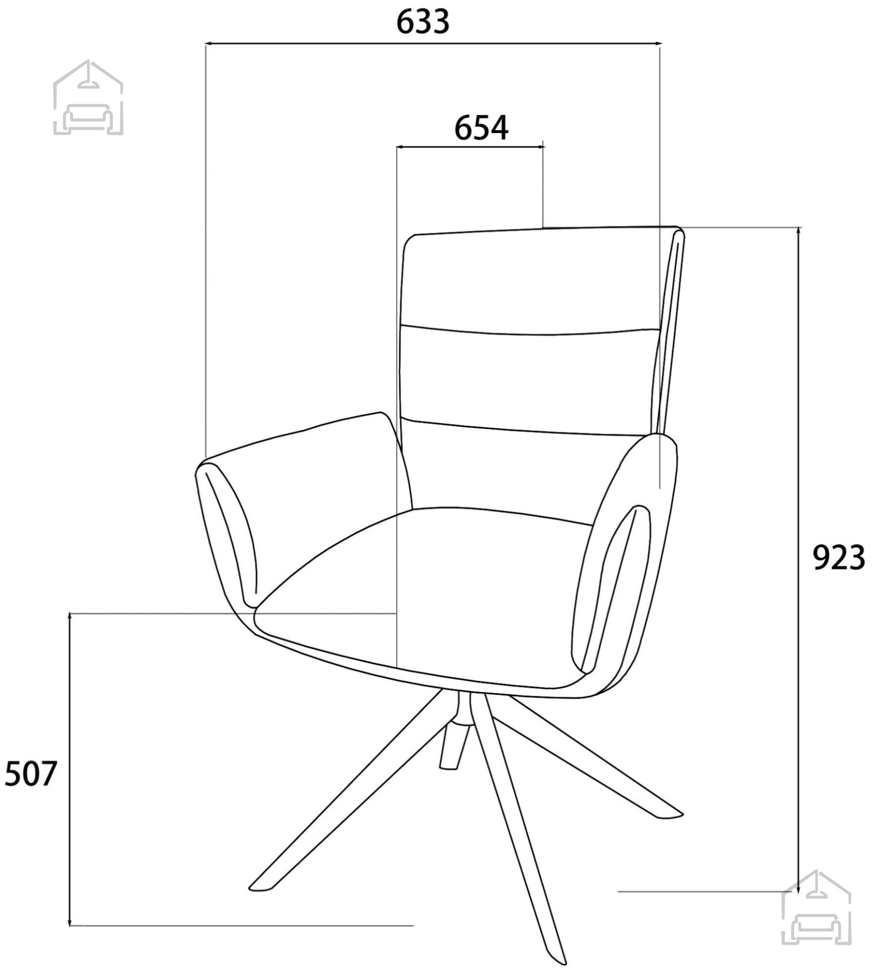 Dank des ausgewogenen Verhältnisses zwischen Größe und Stabilität nimmt der Stuhl nicht zu viel Platz ein und bietet dennoch hohen Sitzkomfort. Das Metallgestell sorgt auch bei maximaler Belastung für Festigkeit und Sicherheit.