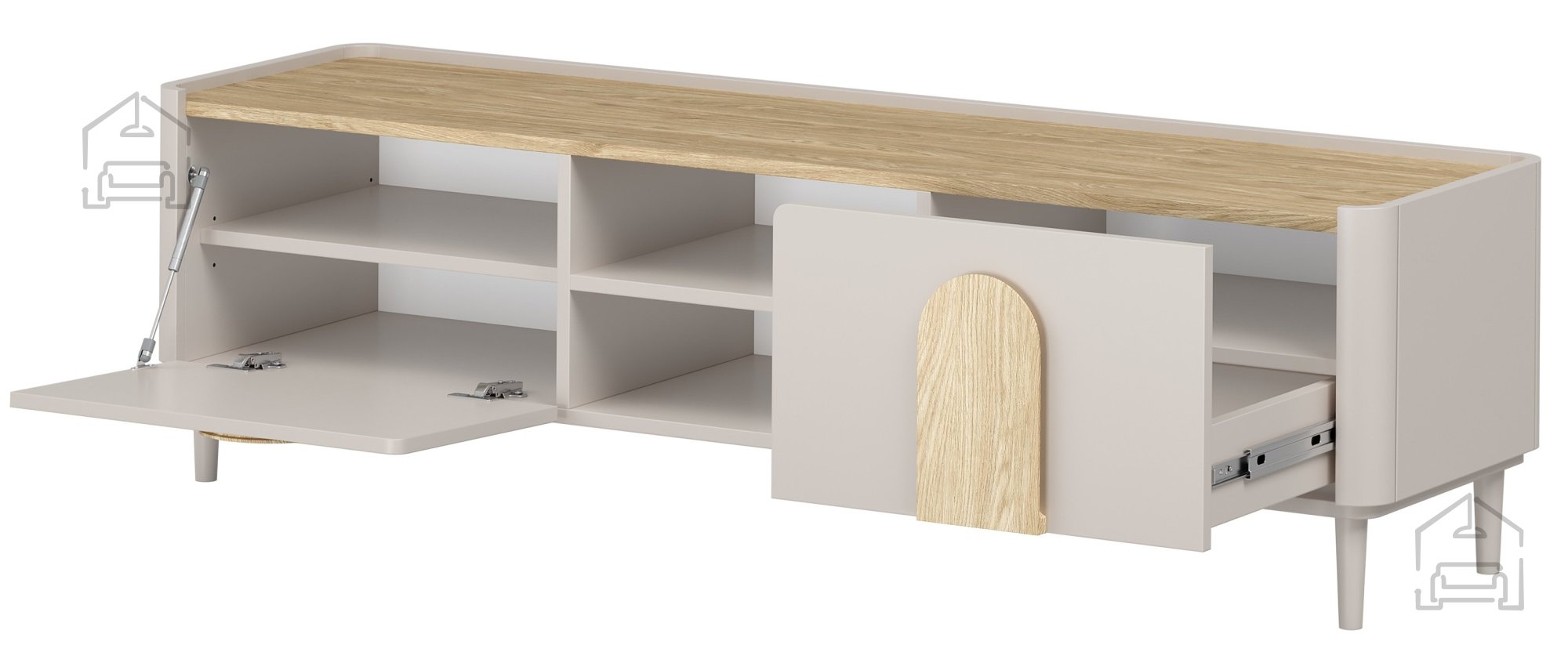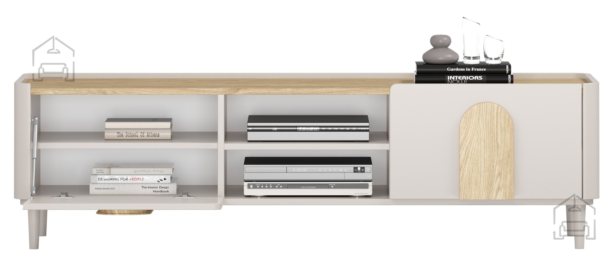 Melaminplatte und Buchenholz: TV-Kommode Amilio 170 1K1SZ mit Beinen – Bogart.