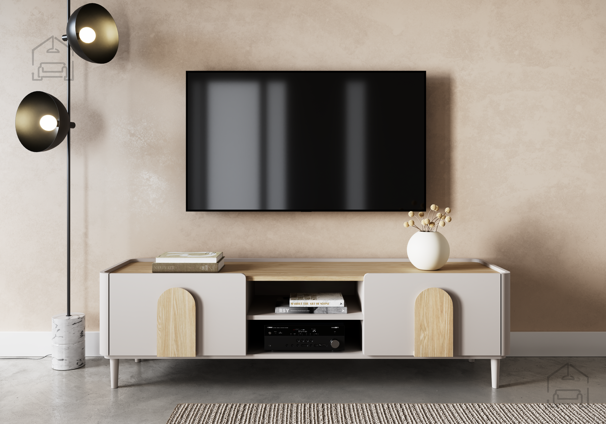 Die TV-Kommode Amilio 170 1K1SZ mit Beinen – Bogart ist somit eine praktische, ästhetische und solide gefertigte Lösung für jedes Zuhause, das Wert auf Schlichtheit, Funktionalität und natürliche Materialien legt. Sie vereint modernes Design, durchdachte Details und eine robuste Struktur. Die ruhige Farbgestaltung und der skandinavische Charakter verwandeln Ihr Wohnzimmer in einen harmonischen Ort der Entspannung, an dem man sich einfach wohlfühlt.