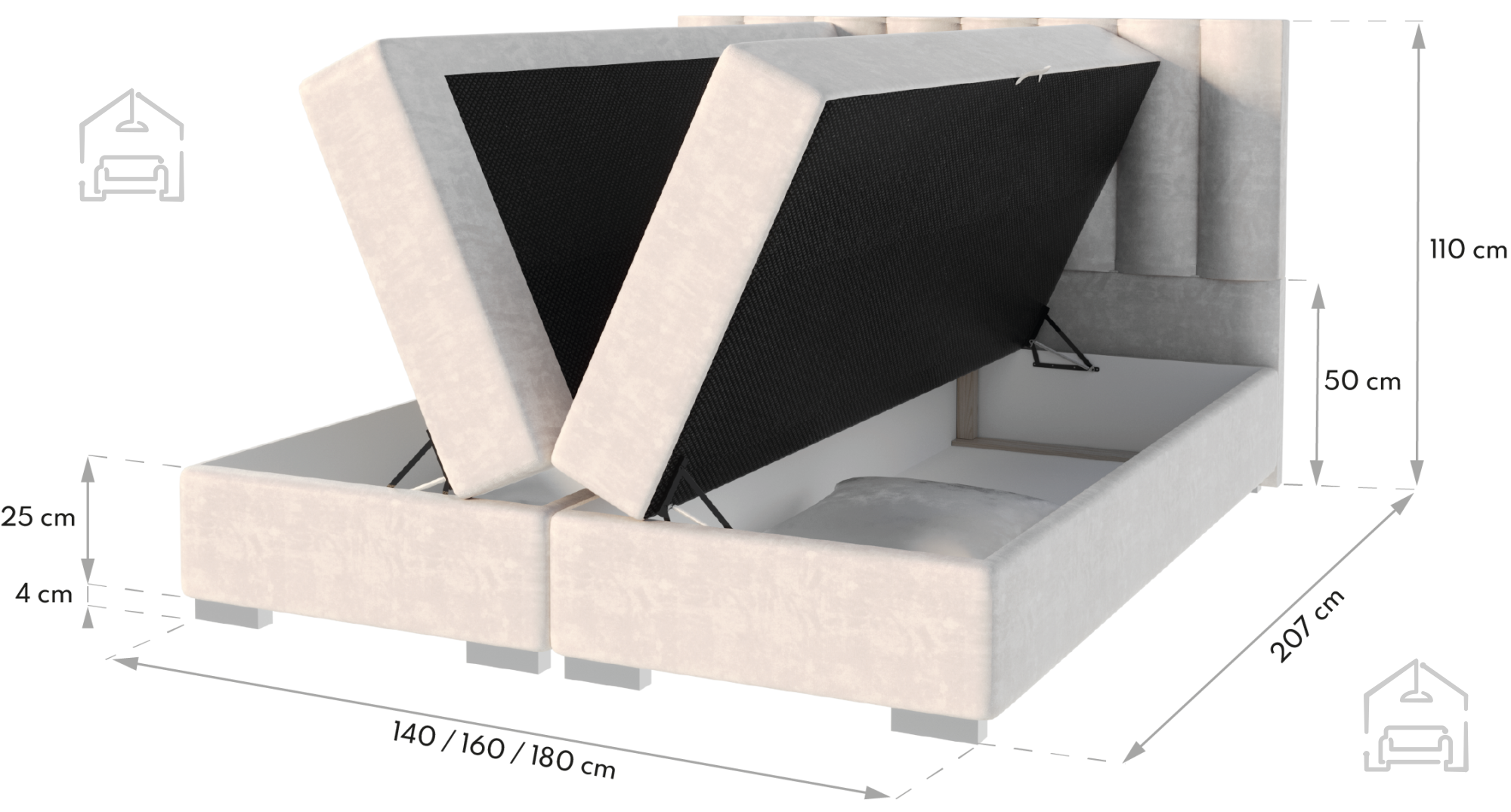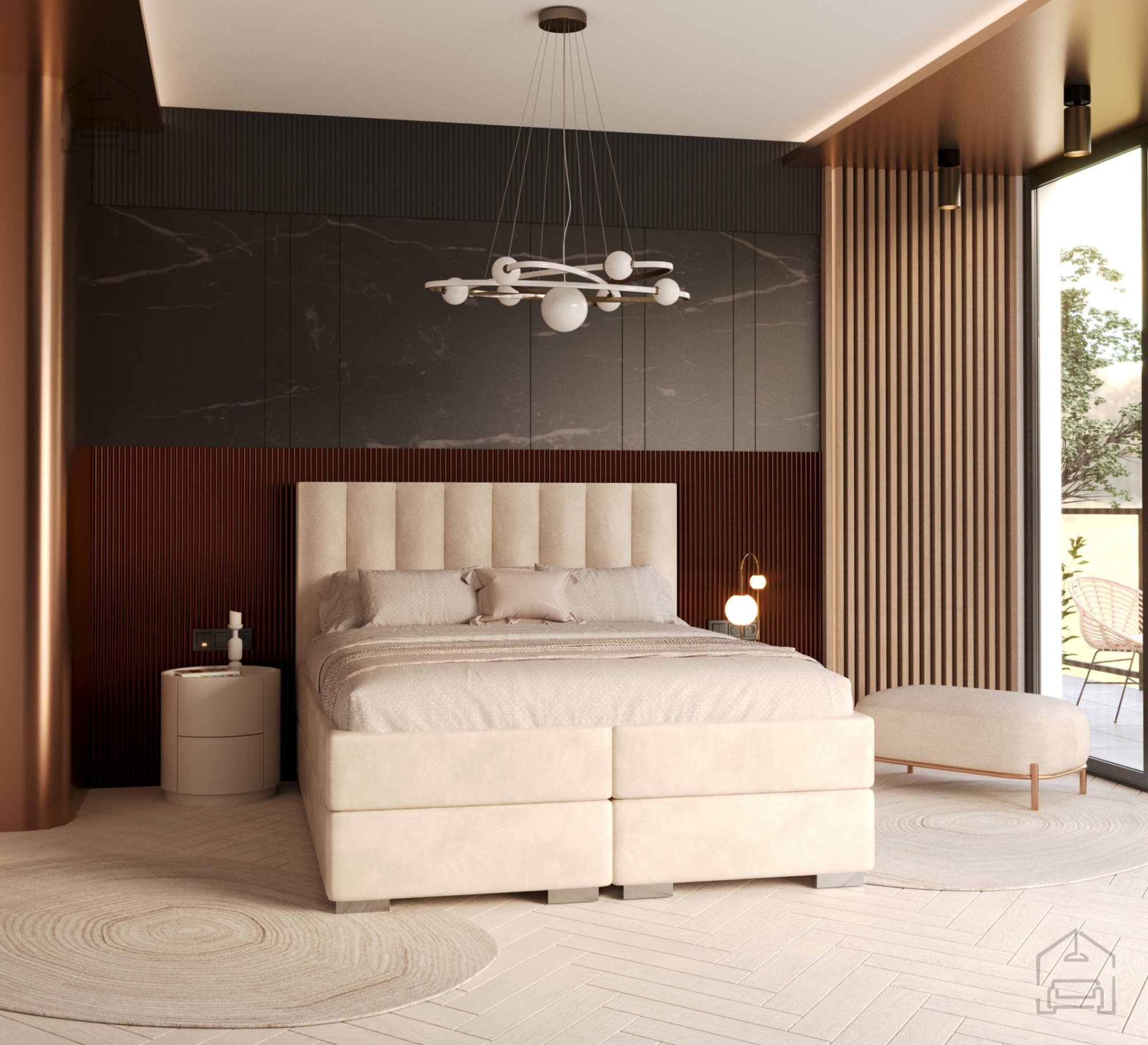 Das Boxspringbett Lincoln ist eine moderne Kombination aus Komfort, Funktionalität und ansprechendem Design, gefertigt in der Bettenfabrik FDM in Polen. Die Liegefläche misst 140–180x200 cm, die Matratzenhöhe beträgt 50 cm – ideal für bequemes Hinlegen und Aufstehen. Der Rahmen ist mit dem hochwertigen Stoff Paris Cream bezogen, der dem Schlafzimmer eine warme und elegante Atmosphäre verleiht. Das Modell Lincoln richtet sich an alle, die Wert auf ein ordentliches Schlafzimmer und durchdachte Lösungen legen: Es verfügt über einen großzügigen Bettkasten sowie einen robusten Stahl-Liftmechanismus, der den Zugang zum Stauraum besonders einfach macht.