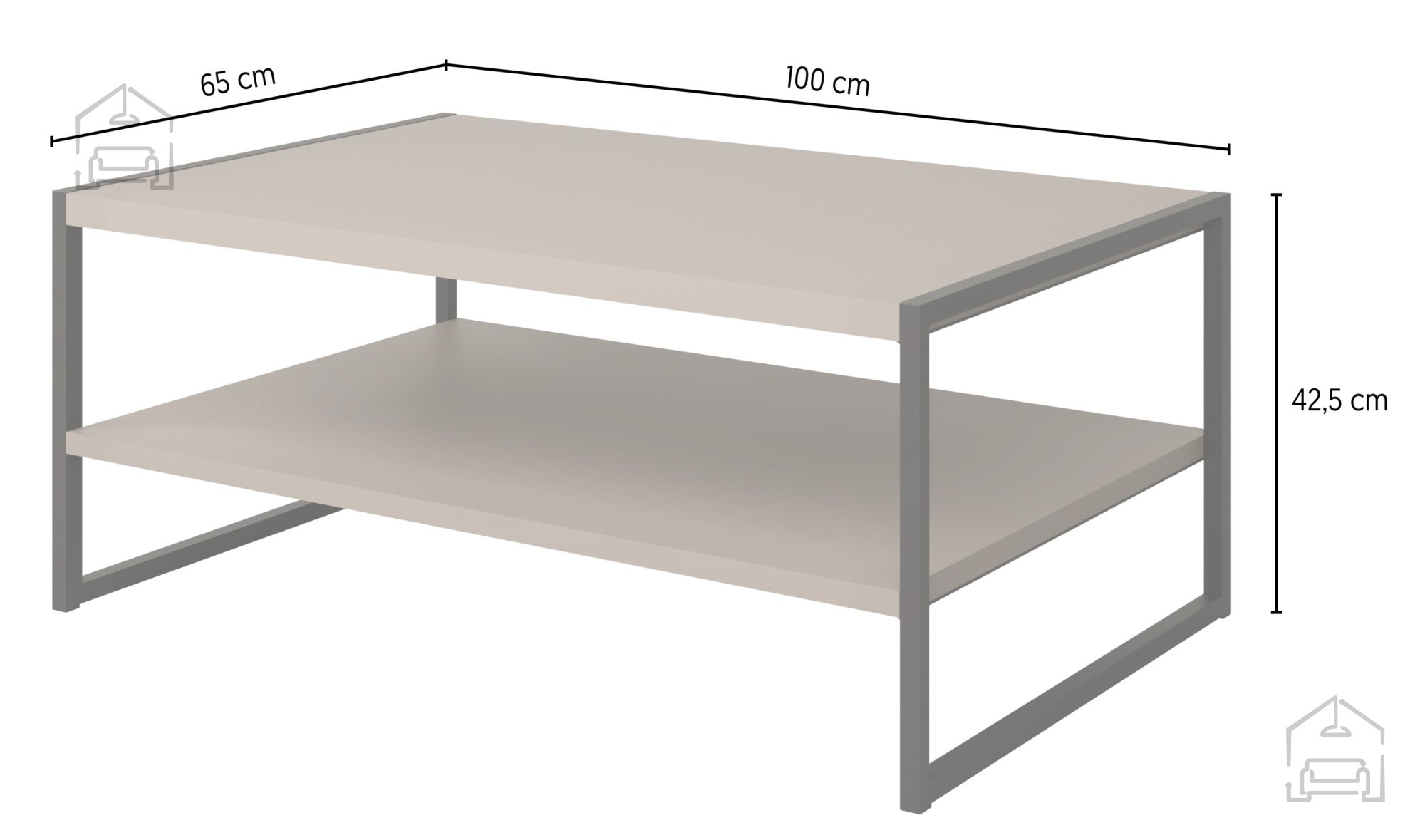 100x65x43 cm Metallkonstruktion und laminierte Oberfläche: Couchtisch Eko – Helvetia meble.