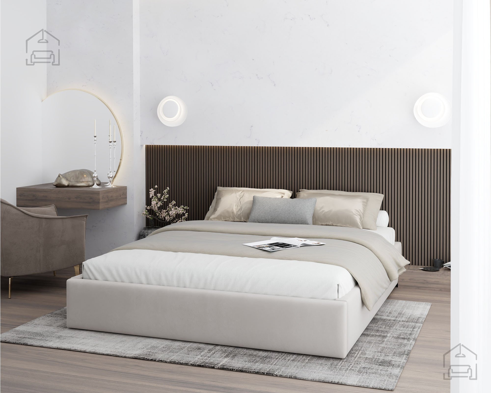 Das Modell ohne Kopfteil bietet volle Freiheit bei der Gestaltung Ihres Schlafzimmers. Diese Ausführung ist besonders beliebt bei all jenen, die einen minimalistischen Stil bevorzugen oder eine flexible Lösung suchen, die sich in unterschiedliche Einrichtungsstile einfügt. Das Bett lässt sich wunderbar mit Tapeten, Holzverkleidungen oder gepolsterten Paneelen kombinieren – ganz nach Ihrem persönlichen Geschmack. So entsteht ein Raum, der Ihre Individualität widerspiegelt.